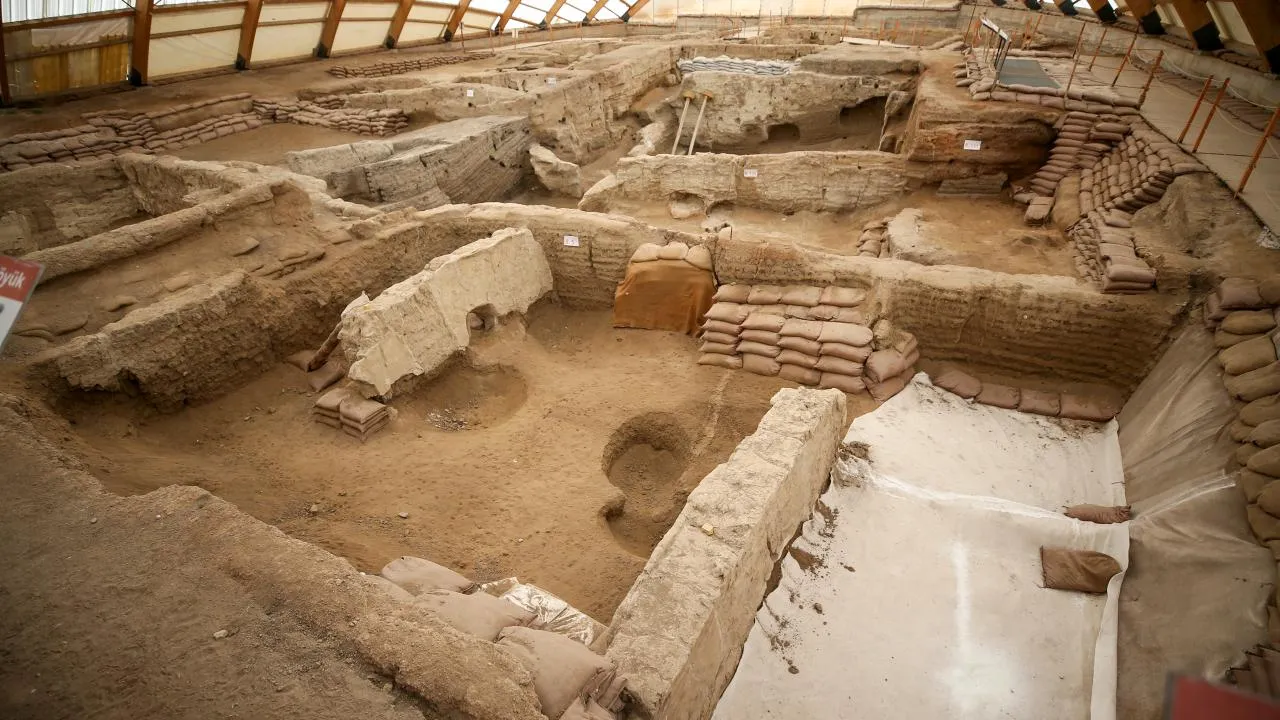 1960’larda kazmaya başlıyor James Mellaart diye biri ve, sonrasında tarih kendini baştan yazdırıyor. Her şey yerleşik yaşamın en eski izlerine dayanıyor burda. Çatıdan girilen evler, yan yana dizili yapılar... Tarımın filiz verdiği topraklar belki de. O zamanki şehir düzeninin ilk hali gibi, ne bi kapı var ne bi sokak.