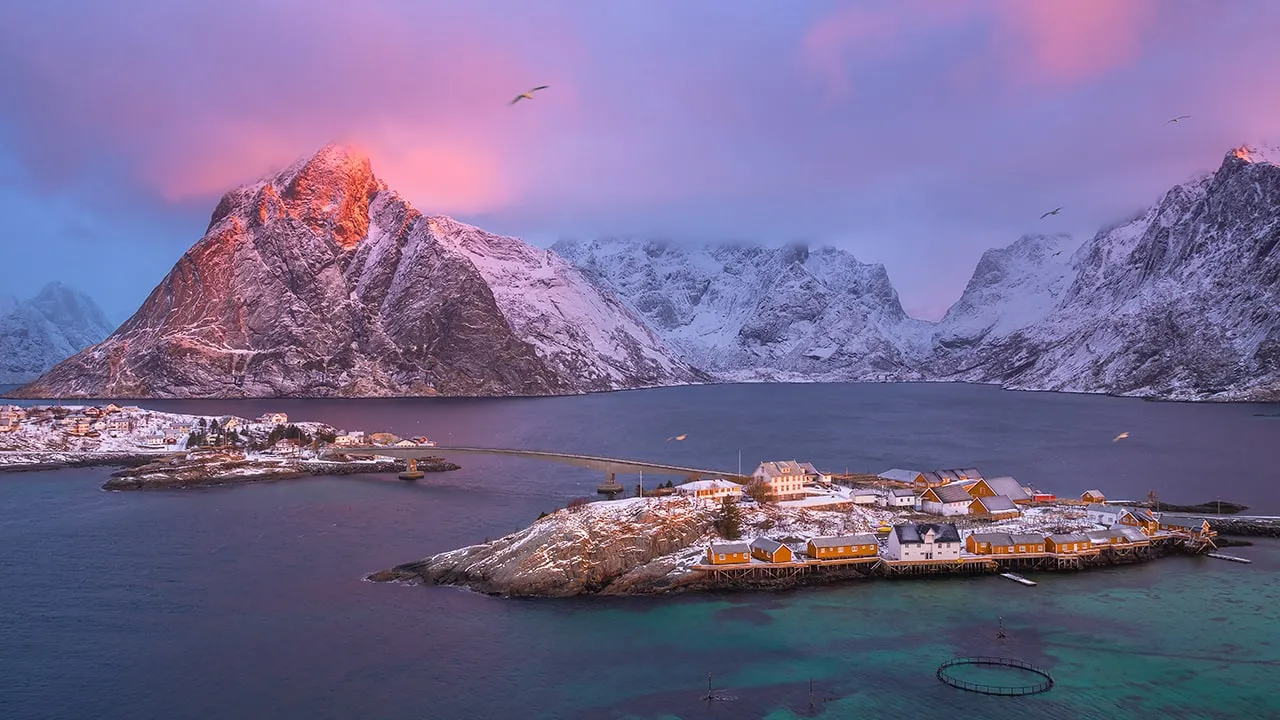 Lofoten Adaları, Norveç’in kuzeyinde bir masal dünyası gibi sessizliğe sarılmış. Adalar, sakin denizleri ve etkileyici dağlarıyla doğanın fırçasından çıkmış gibi. Burada, sadece denizin hışırtısı ve rüzgarın melodisiyle baş başa kalırsınız. Lofoten, insanlar çok az, ama doğa çok güçlüdür. Sessizlik bir o kadar derindir, bu yüzden Lofoten’de geçirilen her an, bir başka boyutun kapılarını aralar. Burada, insanla doğanın uyumu, kelimelere gerek kalmadan anlatılır.