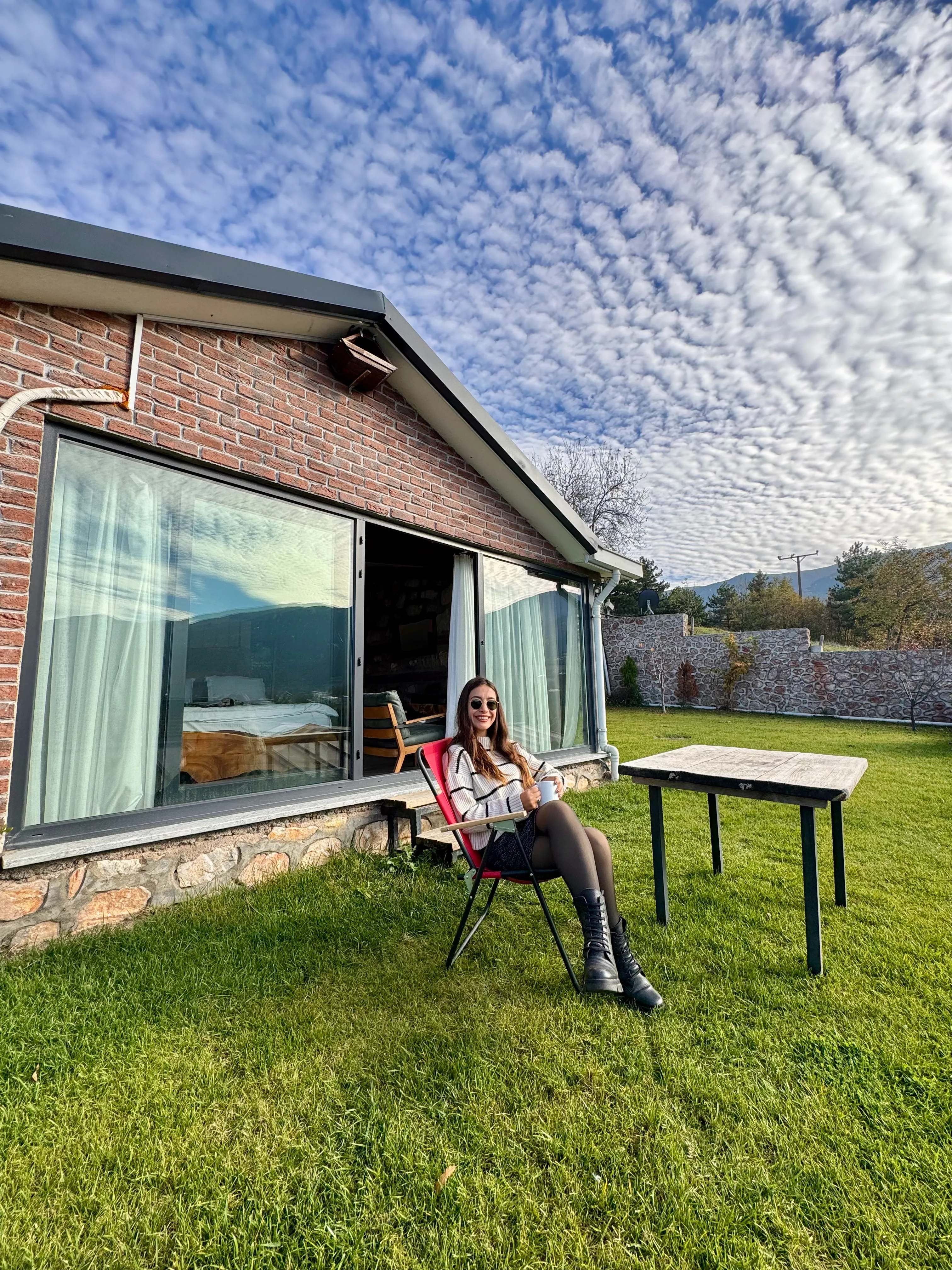 Bahçe alanı oldukça keyifli. Oturma alanları günün her saati kullanılabiliyor. Sabah kahvenizi dışarıda içmek de akşamüstü gün batımını izlemek de aynı derecede huzurlu.