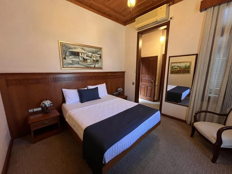 Adana'nın tam merkezinde yer alan tarihi konak otelimiz, misafirlerine şehrin dinamizmiyle tarihin huzur dolu atmosferini bir arada sunuyor. Yılların izini taşıyan bu zarif konakta, modern dünyanın konforunu yaşarken aynı zamanda geçmişe doğru bir yolculuğa çıkacaksınız. Şehrin kalbindeki konumumuz sayesinde Sabancı Merkez Camii, Taş Köprü ve Adana’nın diğer önemli noktalarına yürüyerek kolayca ulaşabilirsiniz. Şehirle iç içe, ama gürültüden uzak bir konaklama imkanı sunuyoruz. Odanızda dinlenirken, otelimizin oda servisi ile rahatlığınızı bozmadan dilediğiniz yemeği ya da içeceği isteyebilir, konağın nostaljik atmosferinde günün yorgunluğunu atabilirsiniz. Kitapseverler için ise kütüphanemiz harika bir kaçış noktası; sessiz bir köşeye çekilip, tarihin izleri arasında kaybolurken kitabınıza dalmanın keyfini yaşayabilirsiniz. Tarihi dokuyu her adımda hissedeceğiniz bu konakta, şehir merkezine yakın olmanın sağladığı kolaylıklar, konforlu hizmetlerle buluşuyor. Adana’yı keşfetmek için ideal bir noktada bulunan otelimiz, size sadece bir konaklama değil, unutulmaz bir deneyim sunacak.
