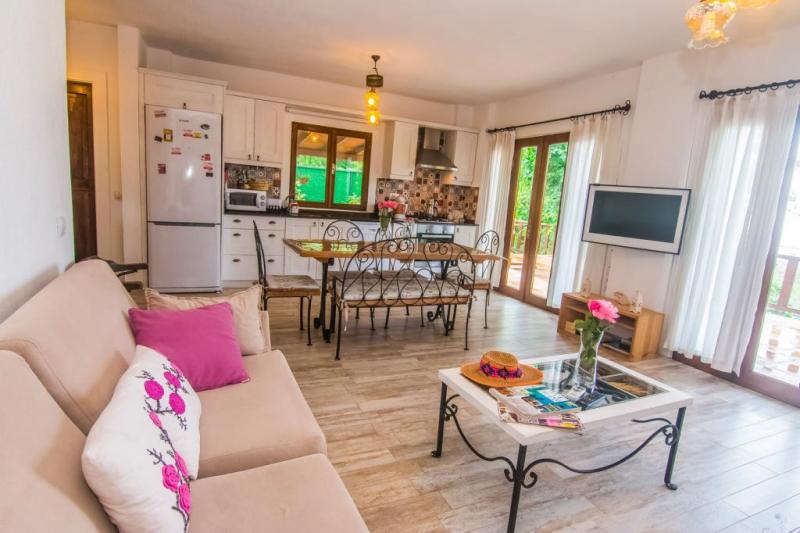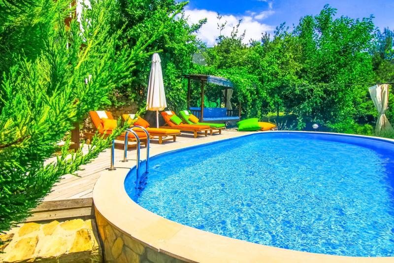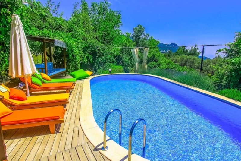 Villamız, huzurlu bir tatil için ideal bir konaklama alanı sunmaktadır. Sekiz kişiye kadar konaklama sağlayabilen geniş odalarıyla aileniz arkadaşlarınızla rahatça vakit geçirebileceğiniz bir atmosfer sunuyor. Doğanın sakinliğinde, kuş cıvıltıları eşliğinde geçireceğiniz sizi şehir hayatının yoğunluğundan uzaklaştırarak tamamen yenileneceksiniz Villamız, tatiliniz boyunca konforunuz için tüm detayları düşünülerek donatılmıştır. Özel havuzda serinleyip verandada dinlenirken, etrafınızdaki doğanın tadını çıkarabilirsiniz. Ayrıca, tam donanımlı mutfağımızda kendi yemeklerinizi hazırlayıp sevdiklerinizle keyifli sofralar kurabilirsiniz. Bu eşsiz atmosferde, doğayla baş başa, sakin ve huzurlu anlar yaşayacaksınız. Villamız, plaja yalnızca 8 km mesafede yer alıyor. Gün boyunca denizin ve güneşin tadını çıkarabilir, ardından villanızda dinlenip akşamları keyif dolu anlar geçirebilirsiniz. Kalkan’ın doğal güzelliklerine keşif yapmak isteyenler için harika bir konumda olan bu villa, unutulmaz bir tatil için sizleri bekliyor.