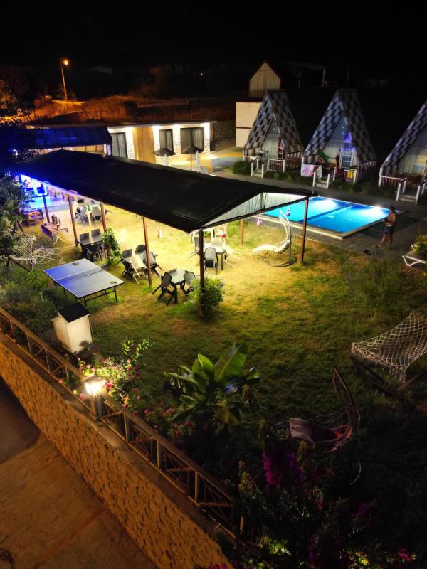 Antalya’nın huzurlu köşelerinden Demre’de, sevdiklerinizle birlikte unutulmaz bir tatil geçirmenizi sağlayacak bungalov otelimiz, doğayla iç içe bir konfor vadediyor. Güne, kuş sesleri eşliğinde zengin ve lezzet dolu kahvaltımızla enerjik bir başlangıç yapabilir, ardından açık yüzme havuzumuzda serinleyerek tüm yorgunluğunuzu geride bırakabilirsiniz. Çocuklar için özel olarak tasarlanmış güvenli yüzme havuzumuz, ailelerin gönül rahatlığıyla tatilin tadını çıkarmasını sağlarken, dev salıncaklarımızda çocuklar kadar yetişkinler de eğlenceli anlar yaşayıp, içindeki çocuğu keşfedebilir. Hem huzuru hem de eğlenceyi bir arada bulabileceğiniz bir tatil deneyimi sizi bekliyor! Tavla ve satranç köşemiz, dostlarınızla keyifli vakitler geçirmenizi sağlarken, mangal alanımızda enfes lezzetler yaratabilir, havuz barımızda içeceklerinizi yudumlayabilirsiniz. 4 kişiye kadar konaklama imkanı sunan bungalov evlerimiz, modern tasarımıyla rahatlığınızı ön planda tutarken, Wi-Fi bağlantısı ve geniş otoparkıyla konforlu bir deneyim sunar. Demre’nin eşsiz atmosferinde, her anı dolu dolu yaşayacağınız bu tatil, sizi hem doğanın kalbine hem de huzurun merkezine davet ediyor.