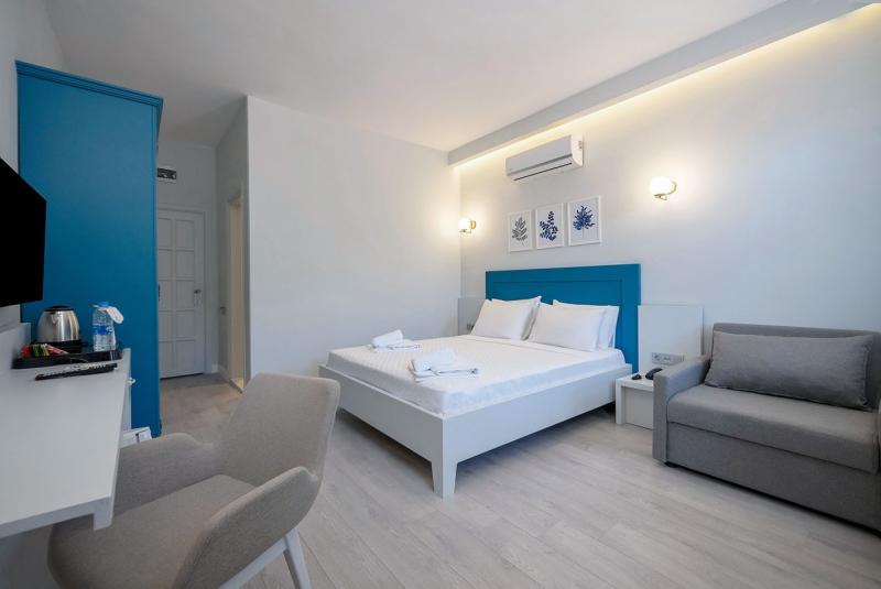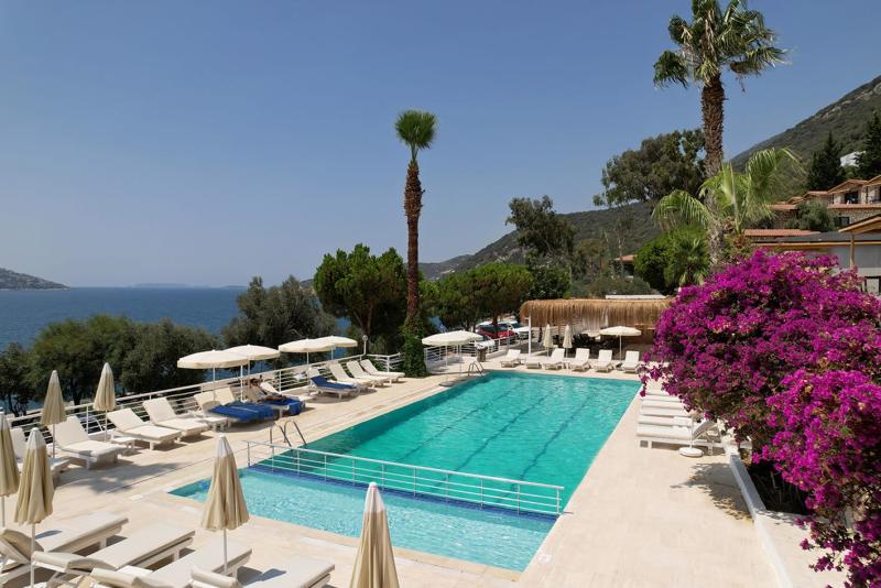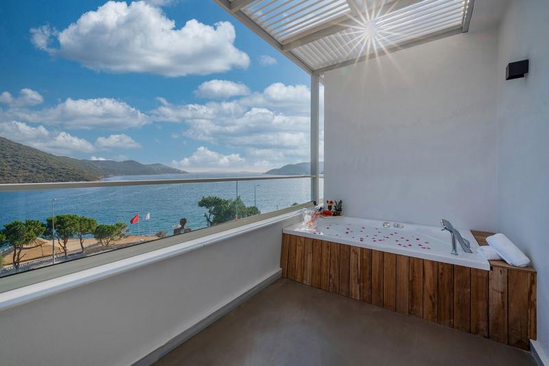 Kaş’ın büyüleyici yarımadasında, Akdeniz’in eşsiz manzarasına karşı konumlanmış otelimiz, denize sıfır konumu ve Akdeniz mimarisinden ilham alan zarif tasarımıyla misafirlerine unutulmaz bir tatil deneyimi sunuyor. Açık yüzme havuzunda güneşin ve suyun tadını çıkarırken, çocuk havuzunda minik misafirlerimiz eğlenceli anlar yaşayabilir. Havuz barımızda serinletici içeceklerin keyfini sürerken, su sporlarıyla adrenalin dolu anlar yaşayabilirsiniz. Standart ve jakuzili odalarımızın yanı sıra, özel havuzlu villa seçeneklerimizle farklı ihtiyaçlara uygun konaklama alternatifleri sunuyoruz. Her oda, lüks ve konforu bir araya getiren özenli detaylarla donatılmış olup, Wi-Fi ve otopark gibi olanaklarla rahat bir tatil imkanı sağlıyor. Güne taze lezzetlerle hazırlanan kahvaltımızla başlayabilir, A la carte restoranımızda Akdeniz’in seçkin tatları eşliğinde unutulmaz bir akşam yemeği deneyimi yaşayabilirsiniz. Günbatımını izlerken barımızda içkinizi yudumlayarak Kaş’ın büyüsüne kapılacaksınız. Doğanın, denizin ve huzurun birleştiği bu özel otel, şehrin karmaşasından uzaklaşarak lüks ve konfor içinde bir tatil arayanlar için mükemmel bir kaçış noktasıdır. Kaş’ın masmavi sularıyla çevrili bu cennette, siz de hayalinizdeki tatili yaşayabilirsiniz!