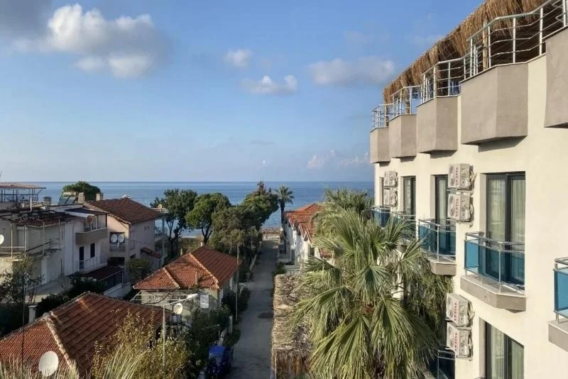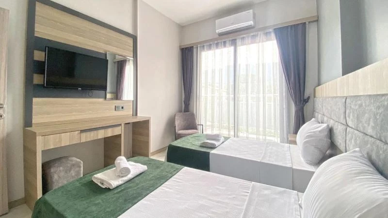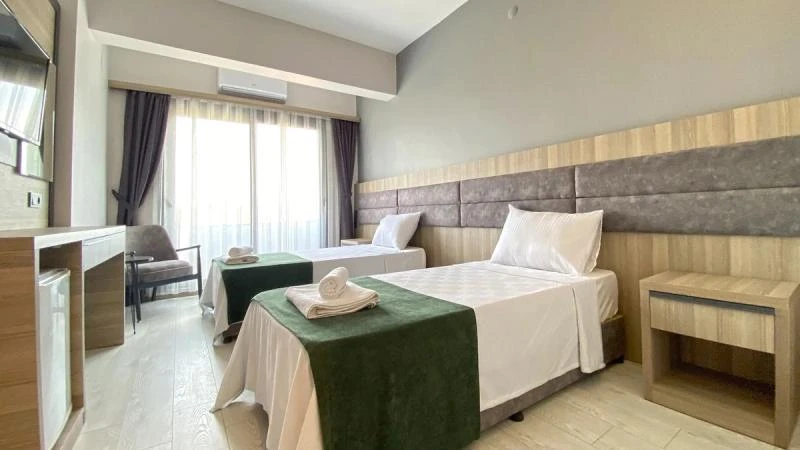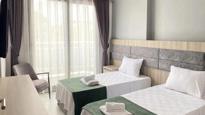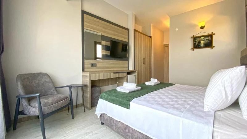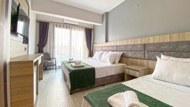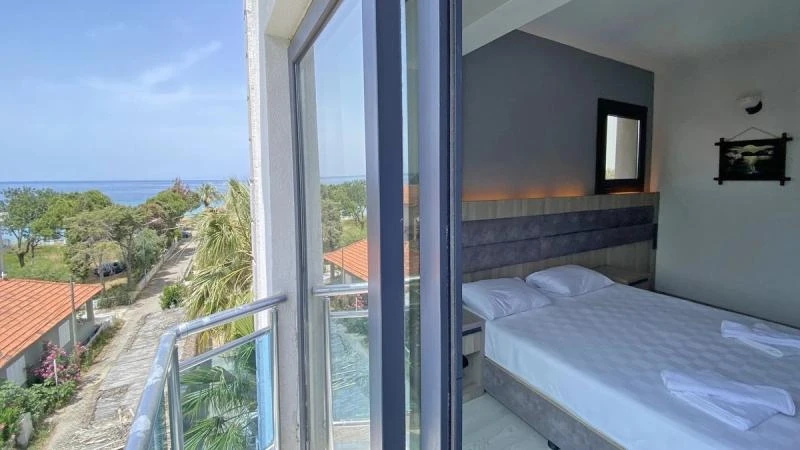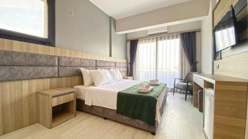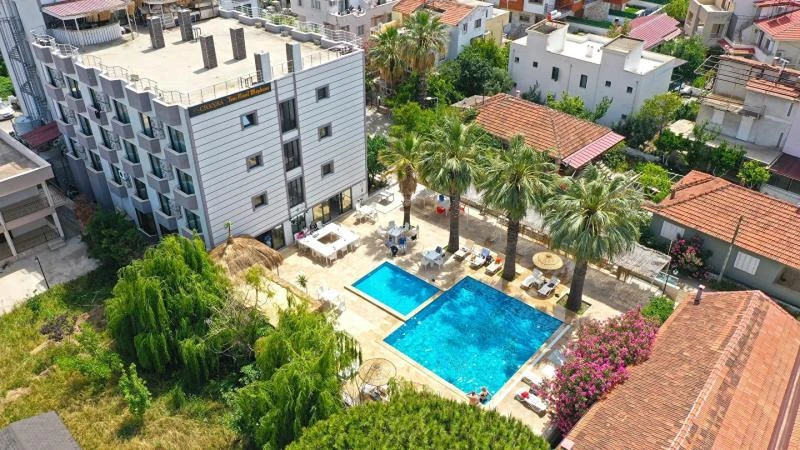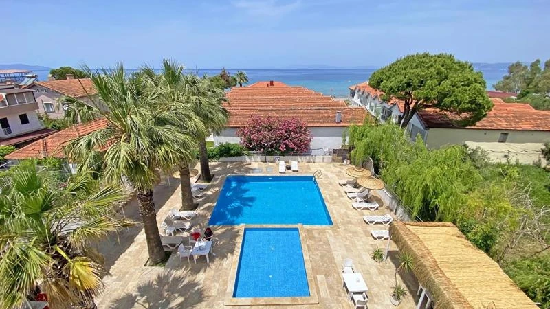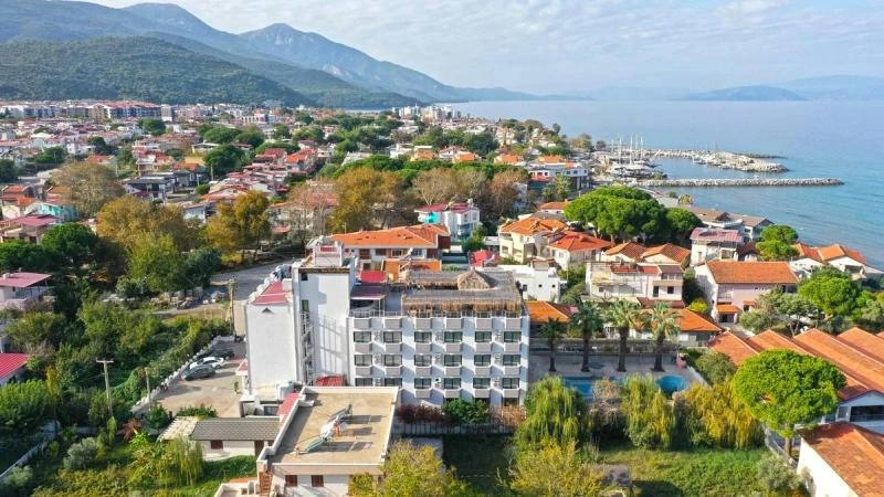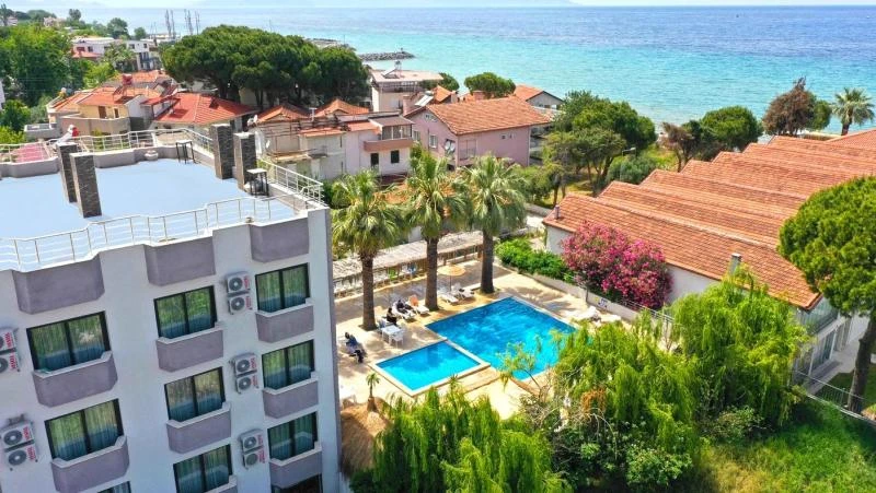 Kuşadası’nın Güzelçamlı bölgesinde denize yalnızca kısa bir yürüyüş mesafesinde yer alıyor ve misafirlerine hem sahile yakınlık hem de doğayla iç içe bir atmosfer sunuyor. Modern tasarıma sahip 49 odası, temiz ve ferah kullanım alanlarıyla konforlu bir konaklama imkânı sağlıyor. Geniş yatak düzenleri, balkon seçenekleri ve sakin çevresi sayesinde hem dinlenmek hem de bölgeyi keşfetmek isteyen konuklar için ideal bir ortam oluşturuyor. Tesisin açık yüzme havuzu, çocuk havuzu, özel plaj alanı ve iskele kullanımı, deniz tatiline değer katan olanaklar arasında yer alıyor. Restoran ve bar bölümleri ise Ege’nin taze lezzetleri ve serinletici içecekleriyle misafirlerin gün boyunca keyifli vakit geçirmesine yardımcı oluyor. Konumu itibarıyla hem doğal yürüyüş rotalarına hem de bölgedeki tarihi merkezlere yakın olması, tatili daha zengin bir deneyime dönüştürüyor.