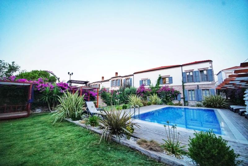 Ayvalık Cunda’da, tarihi dokusuyla büyüleyici bir havuzlu butik otelimiz, sizlere unutulmaz bir tatil deneyimi sunuyor. Bölgenin orijinal mimarisini yansıtan bu eşsiz yapı, standart ve deluxe odalarıyla konforu sanatsal bir estetikle bir araya getiriyor. Cunda’nın hareketli merkezine ve şirin restoranlarına sadece birkaç adımda ulaşabileceğiniz bu konumda, sunduğumuz oda kahvaltı hizmetiyle tatiliniz boyunca kendinizi özel hissedeceksiniz. Ücretsiz Wi-Fi bağlantımız sayesinde sevdiklerinizle her an iletişimde kalabilir, hayvan dostu otelimizde evcil hayvanlarınızla huzur dolu bir kaçamak yapabilirsiniz. Ayrıca, özel plajımızda sunduğumuz ücretsiz şezlong ve şemsiye hizmeti ile deniz keyfini doyasıya yaşayabilirsiniz. Otelimizin büyüleyici bahçesinde kahvenizi yudumlayarak keyifli vakit geçirebilir, yüzme havuzumuzda serin suların tadını çıkarabilirsiniz. Her sabah, yerel ve taze ürünlerle hazırlanan zengin kahvaltımızla güne enerjik bir başlangıç yapacak ve Cunda’nın eşsiz atmosferine kapılacaksınız. Cunda’nın tarihi sokaklarında kaybolarak yerel butiklerde benzersiz hazineleri keşfetmek, size bir sanat galerisinde yürüyormuş hissi verecek. Deniz kenarında güzel yürüyüş alanlar kıyı restoranların tadını çıkarabilirsiniz Tesisimizin Bazı özellikleri özellikleri arasında halka açık otopark, ücretsiz Wi-Fi, açık havuz, ortak havuz, özel sigara içme alanı, teras, 24 saat açık resepsiyon ve çamaşırhane ile ütü hizmeti bulunmaktadır. Sanatla dolu bir tatil deneyimi ve keşif dolu anılar biriktirmek için sizi Cunda’nın kalbine davet ediyoruz.
