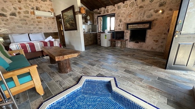 Tesis güzeldi sakin kafa dinlemek isteyenler için fakat tesise giriş esnasında ki 1 km boyunca taşlık hiç düzgün olmayan bir yol var . Havuz bakımsızdı . Restoran ve bar kapalı muhattap personel bulamadık king house da konakladık oda yeterince güzeldi tesis güzel fakat biraz bakımsız kalmış