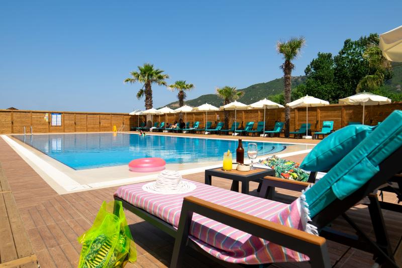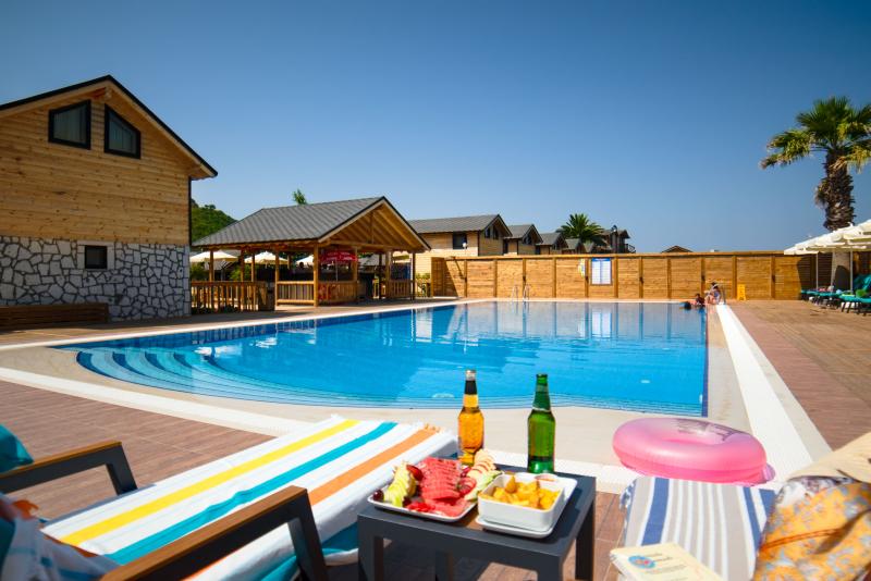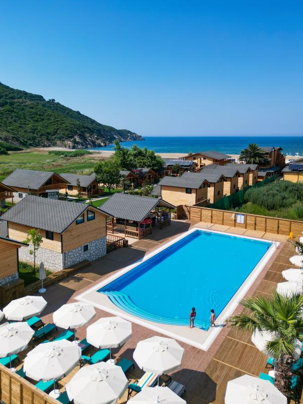 Balıkesir Erdek’in göz alıcı sahilinde, denize sıfır konumuyla sizi hem huzurla hem de eğlenceyle buluşturan bir tatil deneyimine hazır olun! Altın sarısı kum plajda güneşin tadını çıkarırken plaj voleybolunda rekabetin keyfini yaşayabilir, serinlemek için masmavi yüzme havuzuna dalabilirsiniz. Çocuklar ve yetişkinler için masa oyunlarıyla eğlenceyi doruklara taşıyabilir, gün boyu havuz bar ve plaj barda ferahlatıcı içeceklerinizi yudumlayabilirsiniz. Güne lezzet dolu bir başlangıç sunan oda kahvaltı hizmetinin yanı sıra, akşamları şık a la carte restoranında damak zevkinize uygun eşsiz tatları keşfedin. Beş kişiye kadar konaklama imkanı sunan bungalov odalarınızda ücretsiz Wi-Fi ile bağlantıda kalırken, ücretsiz otopark rahatlığıyla aracınızı güvenle bırakabilirsiniz. Doğanın ve denizin buluştuğu bu özel atmosferde, hem huzuru hem eğlenceyi bir arada bulacaksınız!