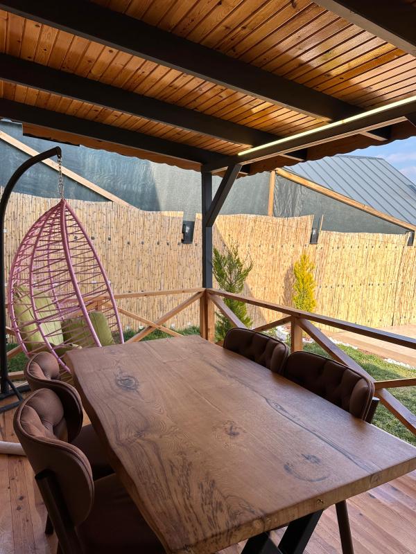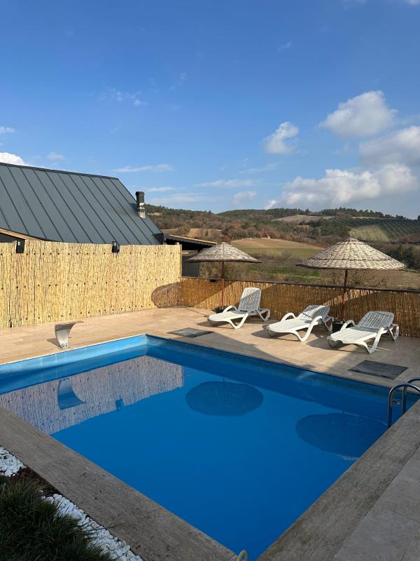 Bilecik’in huzur veren doğası içinde, samimi ve konforlu bir kaçış noktası… Özel sıcak havuzlu bungalovumuz, doğayla iç içe, sessiz ve sakin bir ortamda dinlenmek isteyenler için özenle tasarlandı. Ahşabın sıcak dokusu ve geniş pencerelerden içeri süzülen doğanın yeşil tonlarıyla kendinizi tamamen yenilenmiş hissedeceksiniz. Beş kişiye kadar konaklama imkanı sunan bu özel bungalov, aileler, arkadaş grupları ve doğayla baş başa romantik bir tatil geçirmek isteyen çiftler için ideal. Verandada yer alan barbekü alanında sevdiklerinizle keyifli sofralar kurabilir, geniş bahçede doğanın tadını çıkarabilirsiniz. Gün boyu ısıtmalı havuzun keyfini sürerken, akşamları yıldızların altında sıcacık suyun içinde rahatlamanın huzurunu yaşayabilirsiniz. Ücretsiz Wi-Fi sayesinde dilediğinizce bağlantıda kalabilir, özel otopark hizmetiyle rahatça seyahat edebilirsiniz. Evcil hayvan dostu konseptimiz sayesinde patili dostlarınızı da bu özel tatilinize dahil edebilir, doğada birlikte özgürce vakit geçirebilirsiniz. Doğanın dinginliğiyle konforu bir araya getiren bu eşsiz bungalov, sizi unutulmaz bir tatil deneyimine davet ediyor.