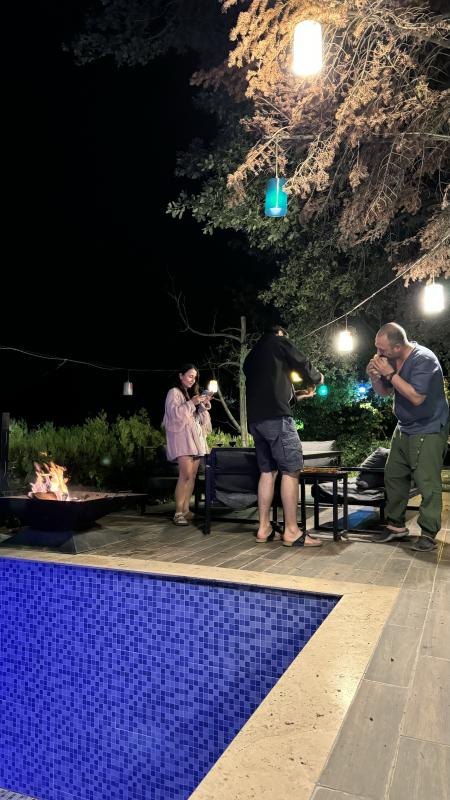 Havuzun etrafındaki bahçede takılmak çok güzeldi. İnternet sürekli bağlıydı, jakuzide rahatlamak ise stresten arınmamı sağladı. Şöminede mum ışığında akşam yemekleri mükemmeldi. Mangal yapmak da ayrıca eğlenceliydi