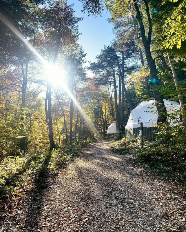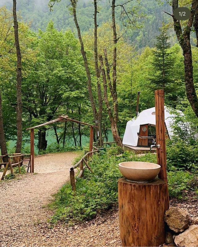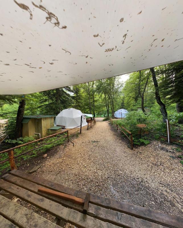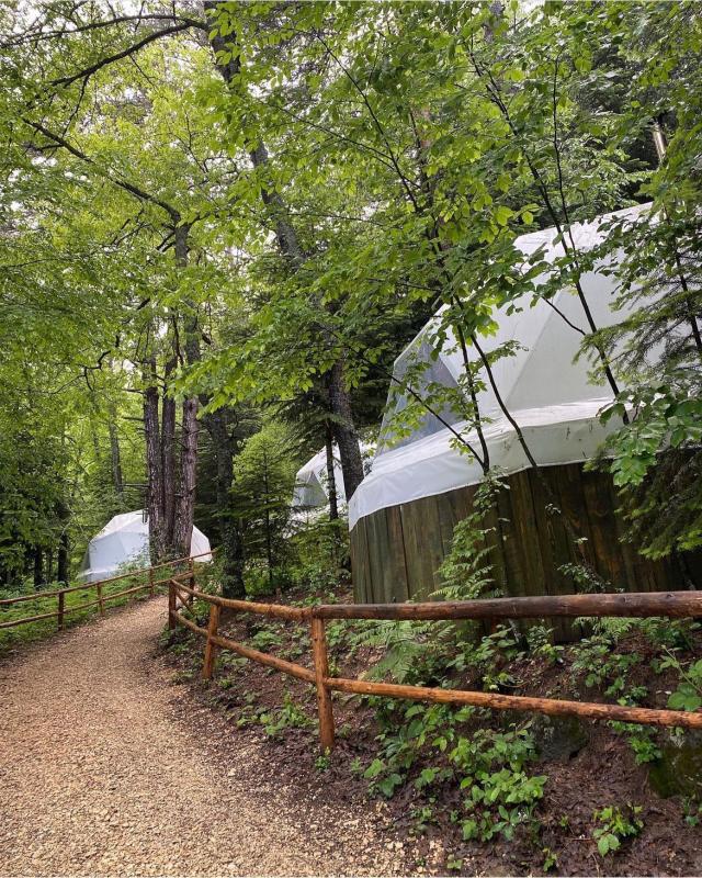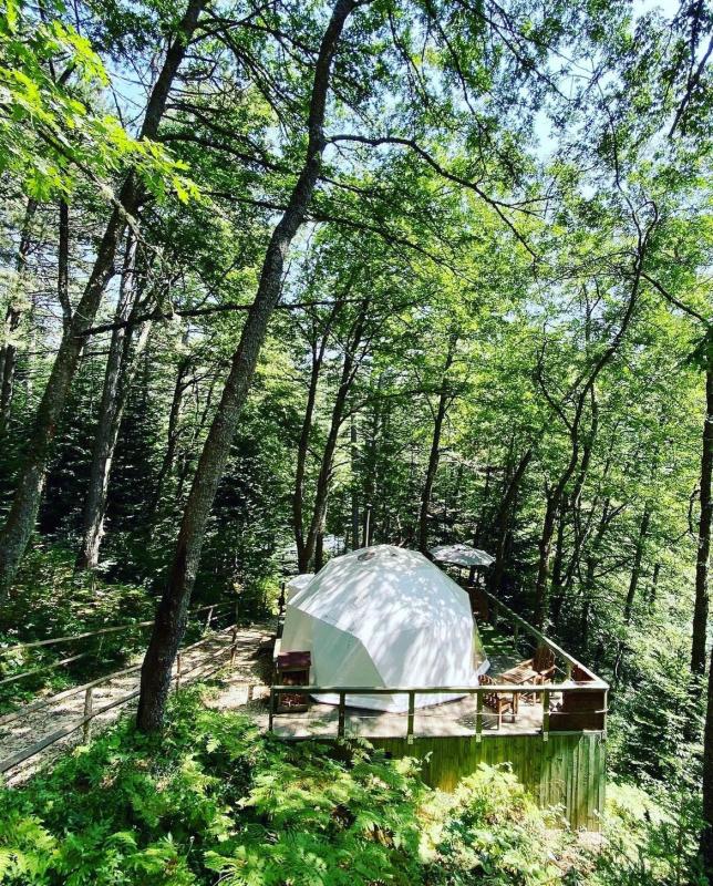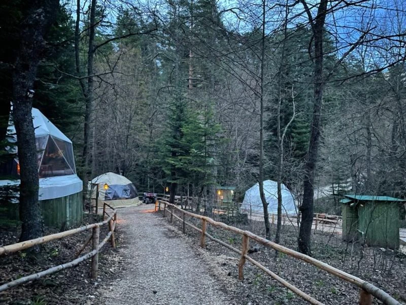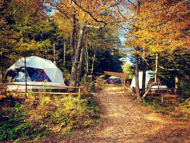 Çam ağaçlarının arasında, Bolu'nun büyüleyici Sülüklü Göl manzarasına karşı unutulmaz bir kamp deneyimi yaşamak ister misiniz? Ancak bu, klasik bir kamp deneyimi değil; lüksün doğayla buluştuğu, konforun zirveye çıktığı bir glamping serüveni. Sülüklü Göl’deki bu doğa dostu glamping otel, çevreye duyarlı bir yaklaşımla tasarlanmış. Elektriğini güneş enerjisinden üreten bu özel mekan, ziyaretçilerine şehir hayatının karmaşasından uzakta, huzur dolu bir tatil sunuyor. Çadırlar tam anlamıyla lüks ve konfor dolu, öyle ki her biri kendine ait duş ve lavaboyla donatılmış. Doğa ile iç içe, fakat otel konforunda bir tatil geçirmenin ayrıcalığını yaşayacaksınız. Geceleri çadırınızın önündeki ateş kovasında yıldızların altında keyifle oturabilir, sabahları ise nefis bir kahvaltıyla doğaya uyanabilirsiniz. Self servis sınırsız çay ve kahveyle dilediğiniz her an kendinize küçük molalar verebilir, göl kenarında yürüyüşten sonra çadırınızdaki şöminenin sıcaklığında günün yorgunluğunu atabilirsiniz. Ailece konaklayabileceğiniz geniş çadırlar, iki yetişkin ve iki çocuğa kadar rahatlık sağlıyor; dışarıda hamak ve açık hava yemek masası da keyif dolu anlar için sizi bekliyor. Bolu Sülüklü Göl’de doğayla uyumlu, hem rahat hem de sürdürülebilir bir tatil arıyorsanız, bu glamping deneyimi tam size göre! Çam ağaçlarının altında, kuş sesleri eşliğinde konforun tadını çıkarırken unutulmaz anılar biriktirmeye hazır olun.