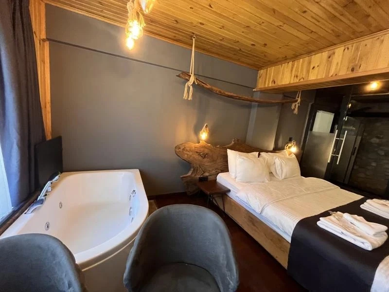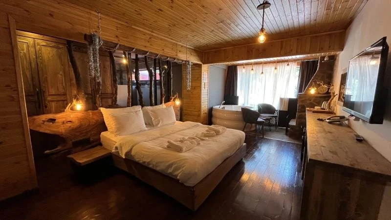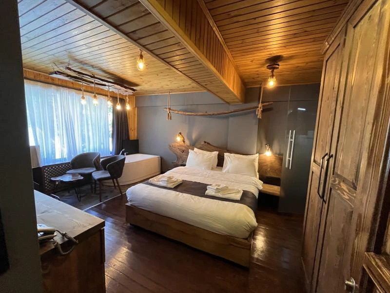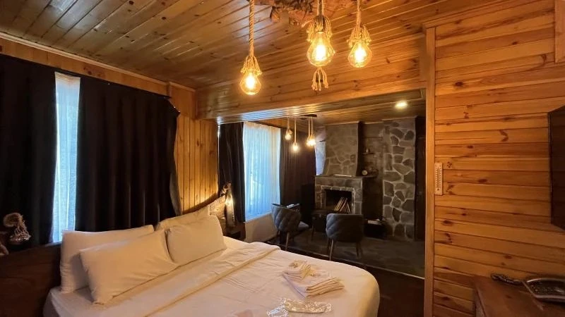 Abant’ın yemyeşil doğasında, taş mimarisiyle öne çıkan sıcak ve samimi bir otel deneyimi sizi bekliyor. Doğanın tam kalbinde, huzuru iliklerinize kadar hissedeceğiniz özel bir konaklama sunuyor. Her biri özenle tasarlanmış odalarda, doğa manzarasına karşı uyanabilir, jakuzili odalarda konforun tadını çıkarabilirsiniz. Sessizliğin ve dinginliğin hâkim olduğu bu atmosfer, özellikle romantik bir kaçamak yapmak isteyen çiftler için ideal. Sabahları ise mis gibi köy havasında, taptaze ürünlerle hazırlanan geleneksel köy kahvaltısıyla güne başlıyor, bahçeden temin edilen doğal ürünlerle, sofranıza samimiyet ve lezzet getiriyoruz. Şehirden uzaklaşıp doğayla baş başa kalmak, taş duvarların verdiği sıcaklıkla dinlenmek ve romantik anılar biriktirmek isterseniz, sizleri Abant’taki bu özel dünyamıza bekleriz.