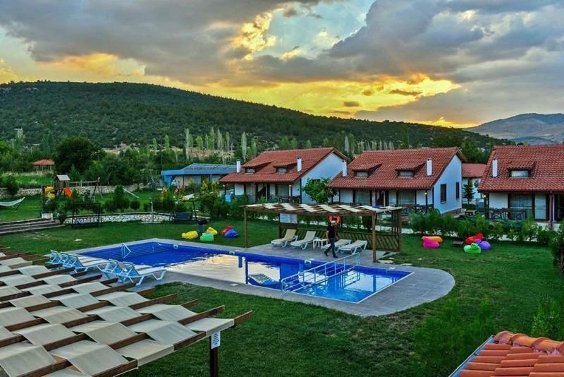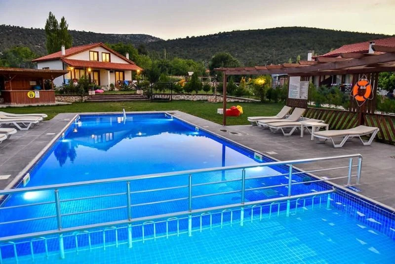 Tesis, ekoturizm yaklaşımını bağımsız villaların konforuyla birleştirerek doğayla uyumlu, sade ve huzurlu bir tatil atmosferi sunar. Geniş yeşil alanlar, yapay göl manzarası ve dağ silueti, konuklara günün her saatinde nefes alan bir yaşam deneyimi sağlar. 1+1 planlı modern villalarda ferah bir yaşam alanı, açık mutfak düzeni, oturma bölümü ve verandaya açılan kapılar bulunur. Ücretsiz Wi-Fi, düz ekran TV, klima, banyo/WC ve saç kurutma makinesi gibi olanaklar standarttır. Göl manzaralı ve deluxe seçenekler, uzun konaklamalarda dahi konforun sürdürülebilir olmasını destekler. Açık yüzme havuzu ve çocuk havuzu günün ritmini yumuşatırken, hobi bahçesi, mini hayvan alanı, geniş mangal ve piknik bölümleri ile çocuk parkı ailelerin beklentilerine yönelik detaylar sunar. Bisiklet imkanı ve yürüyüş rotaları, aktif tatil tercih edenler için pratik ve güvenli bir altyapı oluşturur. Restoran bölümünde açık ve kapalı oturma alanlarıyla güne zengin bir kahvaltı ile başlanabilir; gün boyu atıştırmalıklar ve sıcak-soğuk içecekler servis edilir. Oda servisi, düzenli temizlik ve resepsiyon desteği, konaklamayı öngörülebilir ve konforlu kılar. Bölge, Batı Akdeniz’in öne çıkan rotalarına erişim için elverişlidir; doğa yürüyüşleri, fotoğraf çekimleri, lavanta tarlaları ve tarihi kalıntılara günübirlik geziler planlanabilir. Tesis, küçük ölçekli özel etkinliklere (doğum günü, kutlama, yoga buluşmaları vb.) de uygun alanlar sunar. Geniş bahçeler çocuklara güvenli hareket alanı sağlarken, bağımsız girişli villalar mahremiyeti korur. Otopark, düzenli alan bakımı ve net bilgilendirme politikası, kısa kaçamaklardan uzun soluklu kalışlara kadar istikrarlı bir konfor standardı yaratır.