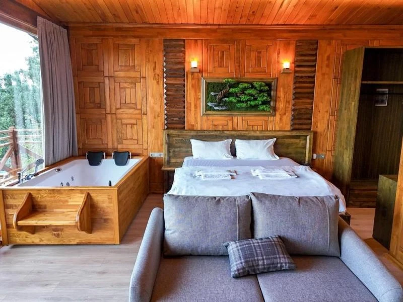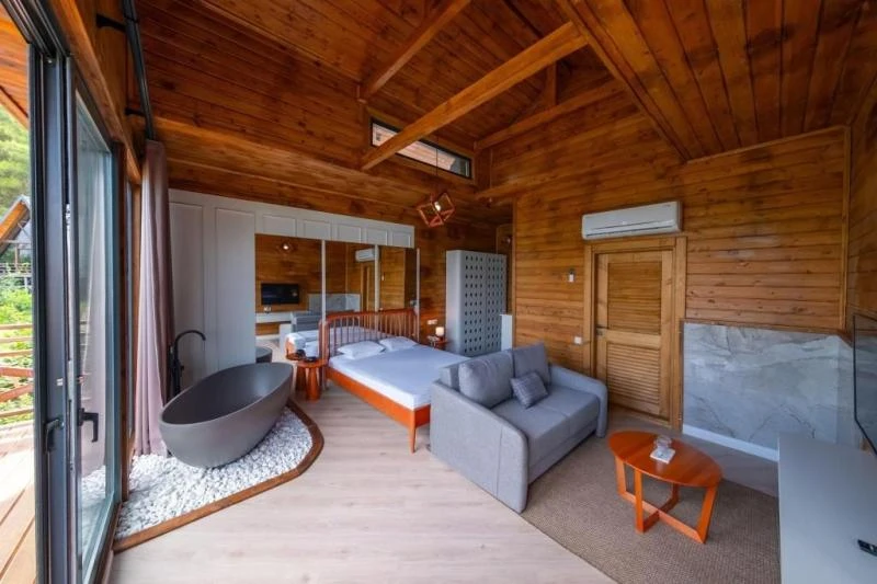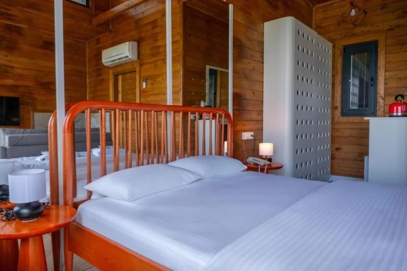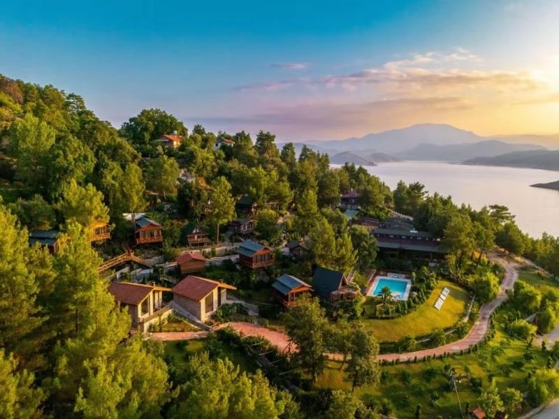 Doğanın ritminin yavaşladığı, suyun ve yeşilin iç içe geçtiği bir çevrede konumlanan bu alan, daha ilk anda şehirden uzaklaştığını hissettiriyor. Göl manzarası gün boyu değişen ışıklarla farklı bir huzur sunarken, çevredeki ağaçlar ve açık alanlar yürüyüş yapmak, durup nefes almak ya da sadece manzarayı izlemek için ideal bir atmosfer yaratıyor. Sabahları kuş sesleriyle uyanılan, akşamları ise sakinliğin göle yansıdığı bu ortam, kalabalıktan kaçmak isteyenler için doğal bir sığınak hissi veriyor. Tesis olanakları ise bu sakinliği bozmadan konforu destekleyecek şekilde düşünülmüş. Konaklama alanları misafire kendine ait bir alan hissi sunarken, açık alanlarda vakit geçirmeye imkân tanıyan düzenlemeler öne çıkıyor. Barbekü yapılabilen alanlar, göl çevresinde zaman geçirme imkânı ve doğayla temas eden küçük detaylar, konaklamayı daha sıcak ve samimi hale getiriyor. Burada amaç gösterişten çok rahatlık; plansız bir kahve molası, uzun bir sohbet ya da sadece sessizce oturup çevreyi izlemek için uygun bir zemin sunuluyor.