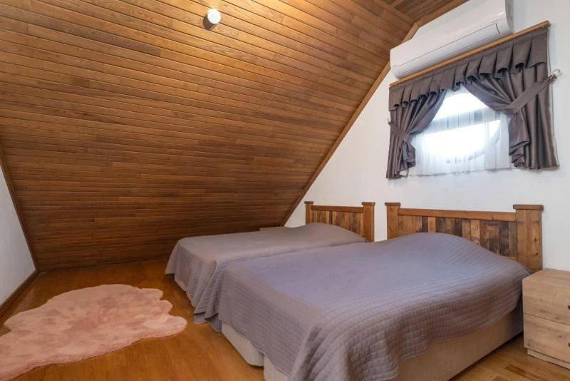 Uludağ’ın eşsiz doğasında konumlanan bu özel villa, misafirlerine huzur dolu bir tatil deneyimi sunuyor. Ahşap detaylarla tasarlanmış sıcak mimarisi ve modern konfor unsurlarıyla hem romantik bir kaçamak arayan çiftler hem de küçük aileler için ideal bir ortam sağlıyor. Villanın geniş salonunda yer alan şömine, özellikle kış akşamlarında tatilin en keyifli anlarını yaşatıyor. Panoramik doğa manzarasına açılan pencereler, karla kaplı ormanların büyüleyici görüntüsünü evin içine taşıyor. Tam donanımlı mutfağı sayesinde misafirler kendi yemeklerini hazırlayarak ev rahatlığında konaklama imkânı bulabiliyor. Konforlu yatak odası, özenle seçilmiş mobilyalar ve modern banyosuyla tatilinizi daha özel hale getiriyor. Kayak pistlerine kısa sürede ulaşım sağlayan konumu, doğa yürüyüşleri için çevresindeki eşsiz rotalar ve hızlı internet bağlantısı gibi olanaklarıyla bu villa, dört mevsim tatil yapmak isteyenler için unutulmaz bir deneyim sunuyor.
