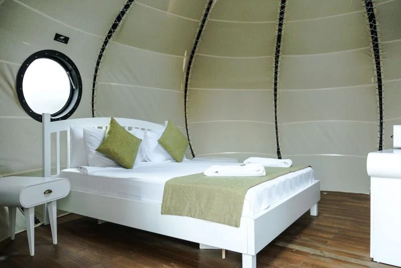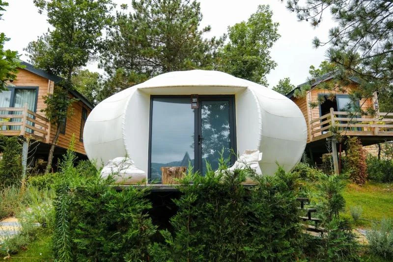 Yeşilin binbir tonu ve gökyüzünün mavisi arasına kurulmuş bu tesis; klasik konaklamanın ötesine geçen seçenekler sunuyor. Bungalovdan kabuk eve, glamping çadırından deluxe konforuna dek farklı konaklama türleriyle her ruh hâline hitap ediyor. Yemek kültürü de dikkat çekici: çeşitli restoranlar, sahil büfeleri, yerel lezzet noktaları… Piknik alanları ve bubble tea gibi hafif atıştırmalık seçenekleriyle günün her saatine uygun akşamüstü keyfi mevcut. Adrenalin severler için macera parkı var: zipline, ipli parkur, gökyüzü merdiveni gibi öğeler; çocuklu aileler için oyun alanları ve soft-play gibi daha sakin aktiviteler de düşünülmüş. Ayrıca kano, deniz bisikleti, ATV-scooter ve yürüyüş yolları gibi doğayla bağlantıyı artıran sportif seçenekler de sunulmuş. Sürdürülebilir turizm anlayışıyla çevreye saygılı bir işletme izlenimi veriyor. Misafirlerine doğanın içinde dinlenme ve keşfetme imkânı vermek gibi açık hedefleri var.