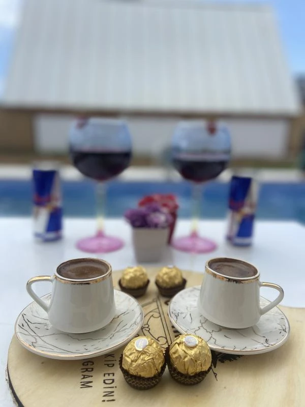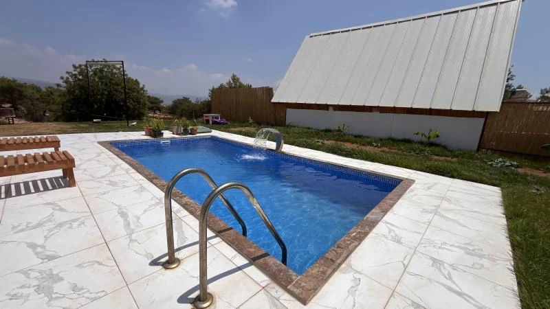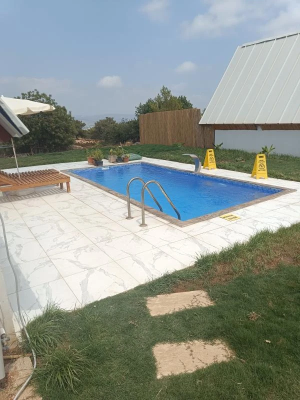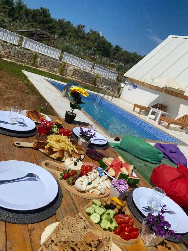 Tesis sahipleri çok güler yüzlü ilgiliydi ama tatiloxtan hiç memnun kalmadım önden doğru bilgi alamadım mesajlara dönüş geç ya da hiç yapılmıyor arıyorum tam bir bilgi alamıyorum mekana gelirsek mekan resimlerdeki gibi biz 4 kişiydik bize biraz küçük geldi havuzu 2 kişilik bir havuz gibi yer olarak biraz ıssız gibiydi market falan yoktu önden almanız gerekirdi ama ses sistemi sinevizyon çıkışta ikramları güler yüzü bizleri memnun ettirmek için ellerinden geleni yapan işletmesiyle başta moralimiz bozulsa da keyifli vakit geçirdiğimiz bir tatildi