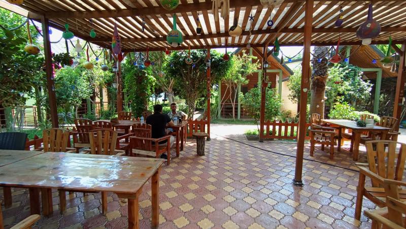Tesis resimlerde görüldüğü gibi değil. Bungalov denmez asla prefabrik tarzı yapılar ahşap sadece merdiveni var. Çok pis hijyen sıfır . Dışarıda yemek yenilen masalara oranın çalışanları ayaklarını uzatıyor. İlgisiz çalışanları var güler yüz hiç yok hiç memnun kalmadık.
