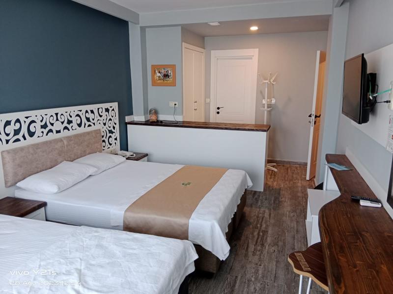KOD 3313 - Mersin Gülnar Denize Sıfır Otel, misafirlerine denize sıfır konumda konforlu bir tatil sunuyor. Ücretsiz internet erişimi ve halka açık otopark imkanları mevcut. Su sporları aktiviteleriyle dolu bir tatil geçirebilirsiniz. Restoran açık büfe, alakart ve kapalı seçenekleriyle lezzetli yemekler sunuyor. Bahçede dinlenebilir, şezlong ve şemsiye hizmetlerinden faydalanabilirsiniz. Çocuklar için özel büfe ve restoranda bebek sandalyesi gibi olanaklar mevcut. 24 saat açık resepsiyon, hızlı check-in/out, emanet kasa ve tur danışmanlığı hizmetleri ile konforunuz sağlanıyor. Araba kiralama imkanıyla ulaşımınızı da kolaylaştırabilirsiniz. Kum plajıyla deniz keyfini doyasıya yaşayabilirsiniz.