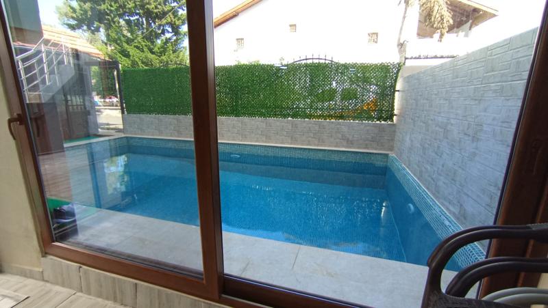 Mersin Çeşmeli’de, denize sadece 20 metre mesafede, sakin bir tatil için ideal bir villa sizi bekliyor! 4 yetişkin veya 2 yetişkin ve 2 çocuk konaklayabiliyor. Villa, klima, ücretsiz WiFi ve LCD TV gibi olanaklarla donatılmış. Donanımlı mutfağında ihtiyacınız olan her şey mevcut, böylece dilediğiniz gibi yemek yapabilirsiniz. Geniş yaşam alanları sayesinde evinizin konforunu hissedeceksiniz. Havuzda serinlerken güneşin tadını çıkarabilir ya da sadece dinlenip keyif yapabilirsiniz. Merkezdeki konumuyla hem denize hem de çevredeki mekanlara rahatça ulaşabilirsiniz. Çeşmeli’de huzurlu bir tatil arıyorsanız, bu villa tam size göre. Sakin ortamı ve konforuyla unutulmaz anılar biriktirmeniz için hazır. Rezervasyonunuzu hemen yapın ve bu fırsatı kaçırmayın!