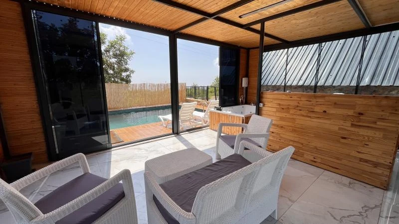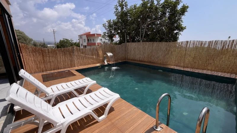 Harika ötesi bir şeydi gerçekten çok güzeldi havuzu çok temizdi hep doluydu temiz bir evdi sessiz bir yerdi