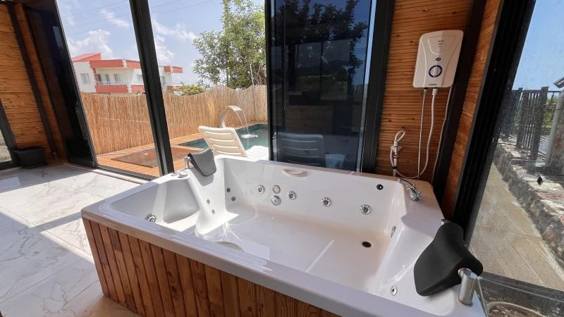 Tesis çok kotuydu su çok yavasti dus alamayacak kadar problemi 3 saat sonra hallettiler ve yatamadik gunes çok kötü odalara giriyor kapatacak perde bile yok 5 kişiye sığar demişlerdi gitti çift yatak var sadece ve 3 tane yer için yatağı hiç bilmiyordum öyle olduğunu jakuzi bozuktu 5 saat suyu açtık dolmamış tesiste sıcak su bile yok denediğim en kötü tesis maalesef hiç tavsiye etmiyorum