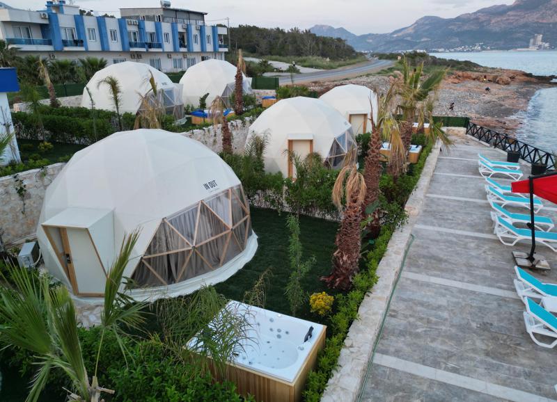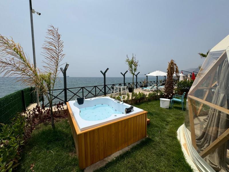 Denize sıfır konumda yer alan bu jakuzili glamping otel, Silifke’nin güzelliklerini keşfetmek isteyenlere unutulmaz bir tatil sunuyor. Akdeniz’in eşsiz manzarasına karşı konforlu bir konaklama arayanlar için ideal olan bu glamping otelde, özel jakuzili odalarla doğayla baş başa kalmanın keyfini çıkarabilirsiniz. Beach bar ve alakart restoran seçenekleri sayesinde deniz kenarında günün her anı lezzetli tatlarla buluşabilirsiniz. Otelin geniş ortak alanları; çatı terası, güneşlenme terası ve şezlong hizmetleri ile güneşin tadını doyasıya çıkarabileceğiniz bir ortam sunuyor. Aileler dahil olmak üzere herkesin rahatlığı düşünülmüş. 24 saat hizmet veren resepsiyon, hızlı check-in ve günlük temizlik gibi olanaklarla misafirler için her detayın özenle planlandığı bu otel, ayrıca özel otopark, havaalanı servisi ve araba kiralama hizmetleriyle ulaşım konusunda da kolaylık sağlıyor.