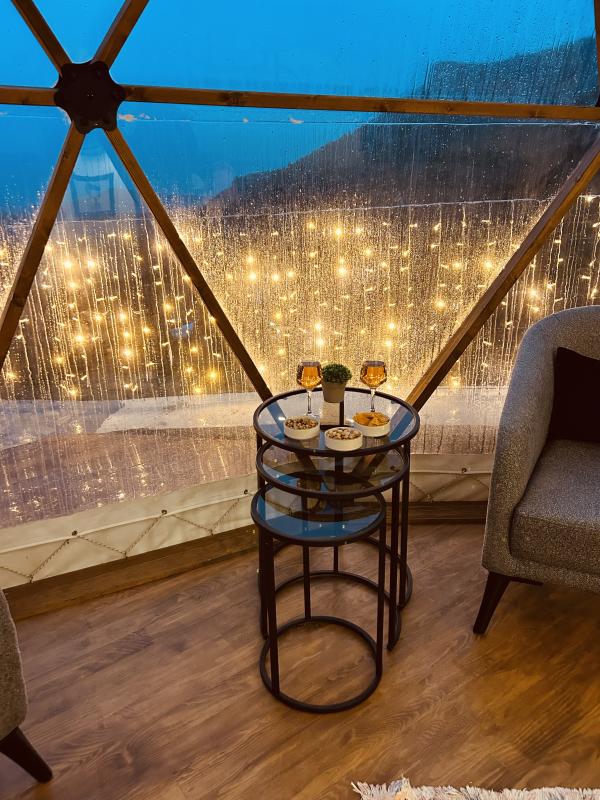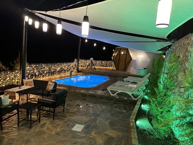 Bölgedeki en iyi işletmelerden biri. Tek geceden uzun süreli konaklamalarınız için çok ideal bi tesis (tek gece konaklamalarda temizlik farkı talep ediliyor) Manzara eşliğinde ister ateş başı ister jakuzi ister glamping’te yanınızda getirdiğiniz cihazlarla film keyfi yapabilirsiniz. Çok geniş bir barbeküsü mevcut, yalnızca tutuşturucu jel ve ya mangal kömürünü yanınızda getirmeniz gerekiyor, talaş ve çuval başı ücretli olmak üzere odunu tesisten temin edebilirsiniz. Şiş ve ızgara da tesiste mevcut. Bir de kömür maşasına ihtiyacınız olabilir. Mutfak gereçleri tam, baharat, tuz, yağ, salça yanınızda getirmeniz gerekiyor. Banyo için de şampuan getirmeniz yeterli olacaktır. Yakınlarda tesise paket getirebilen bir köy marketi de mevcut. Bahçe ve iç mekan genişliği gayet ferah çocuklarınız oyun oynayabilir. Glamping’lerin birinin havuzu ısıtmalı değil, ancak jakuzi alternatifi var. 7/24 sıcak su mevcut. Jakuzi çok geç dolabiliyor. Suyun sıcaklığını ayarlayıp biraz erken doldurmaya başlamanız lazım. Genel olarak ücretini hak eden en ince detayına kadar düşünülmüş ve konfora önem vermiş bir işletme, içiniz rahat konaklayabilirsiniz.