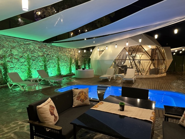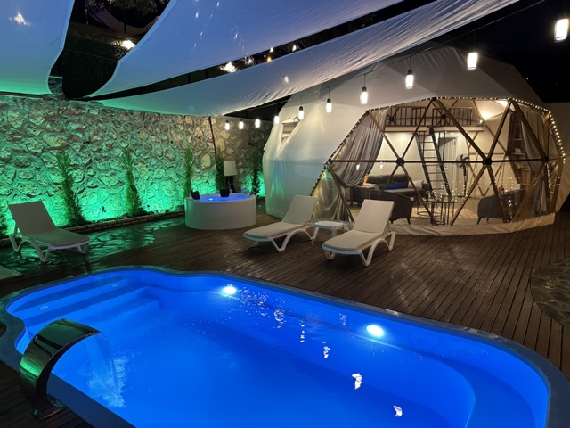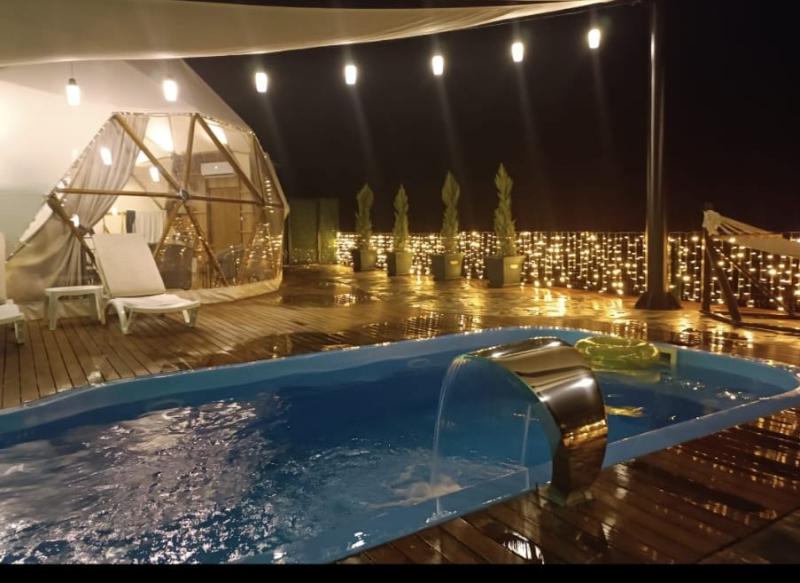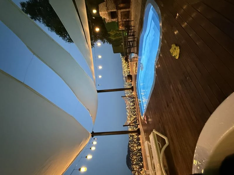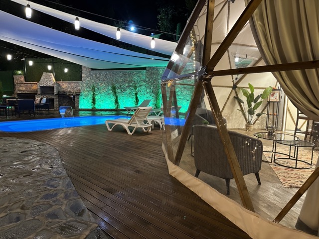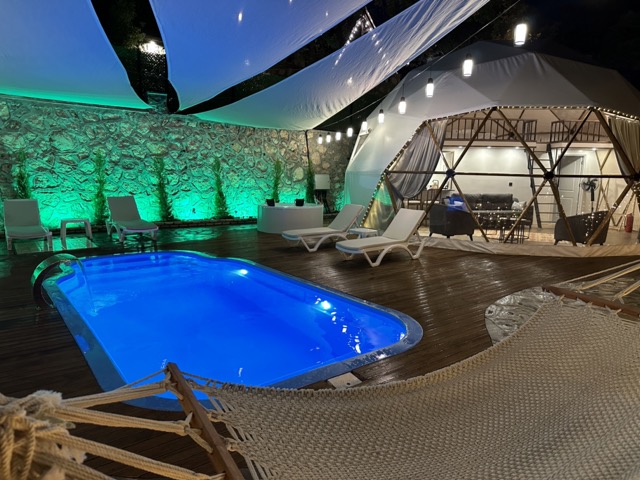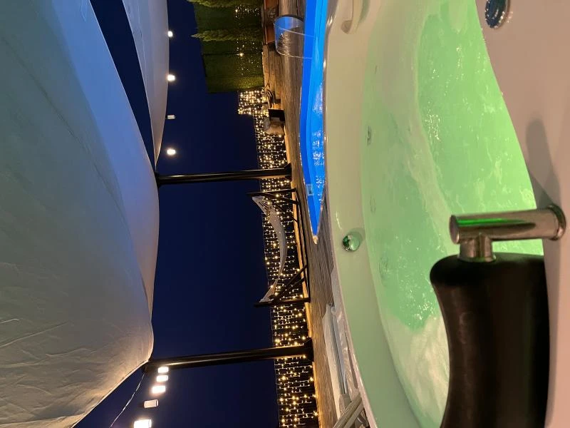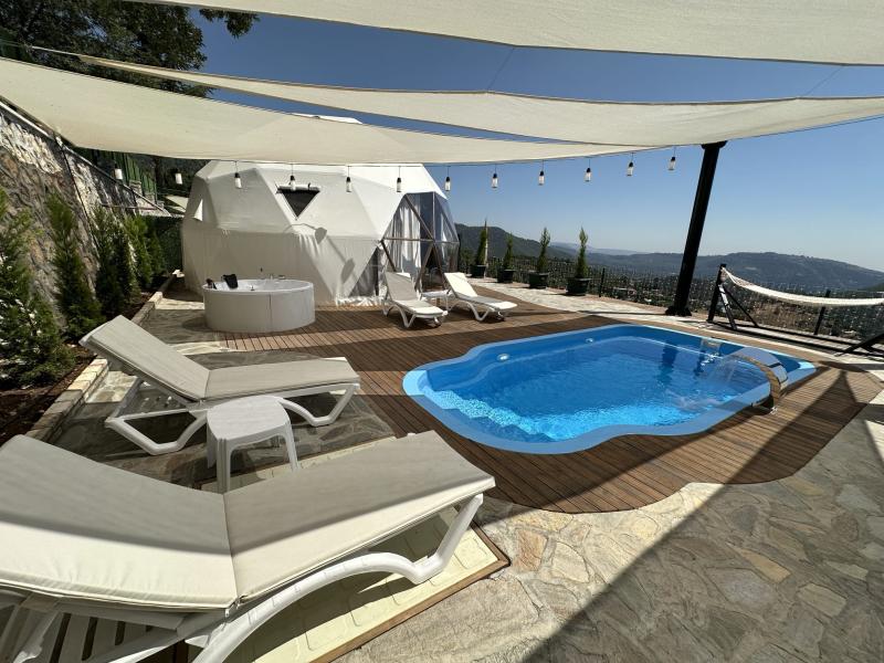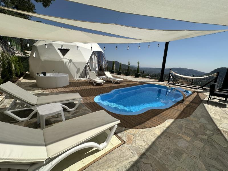 Tesis hizmetinden çok memnun kaldık. Glamping de 1 gece geçirdik. Temiz, ferah genişti. Sıcak suyu, sıcak soğuk kliması, sinevizyon (e-posta istediği için biz giriş yapamadık) mutfak araç gereçleri vs her şey bilgiler de olduğu gibi vardı. Havuz ısıtmalı olduğu için ılıktı. Lakin benim gibi mahremiyete önem verenler için Glamping havuz ve jakuzisi dışarıda olduğu için bu yönde bana uygun değildi. Ama normal tesettürlü bayanlar havuza haşema ile girilebilir. Yeşil çit tarzı şeyler ile kapalı olduğu için rahat edebilirler.