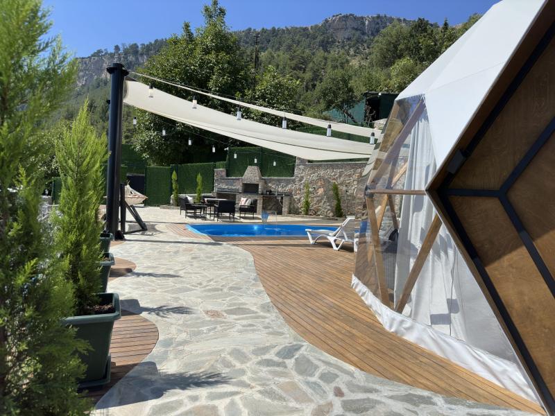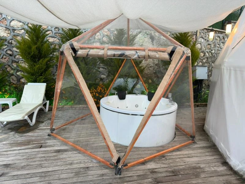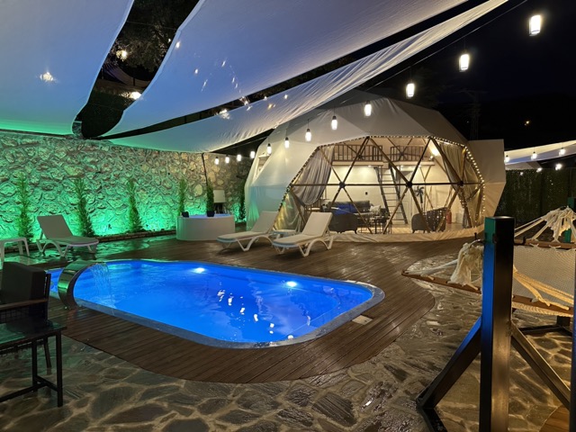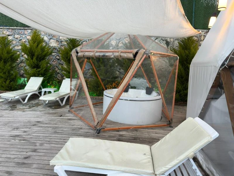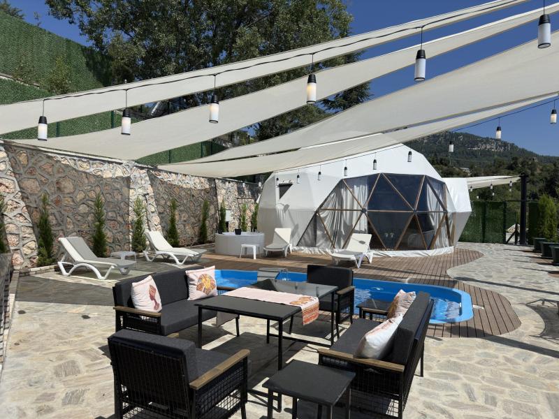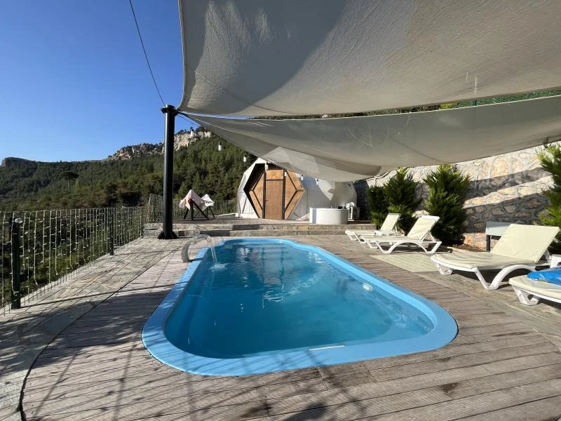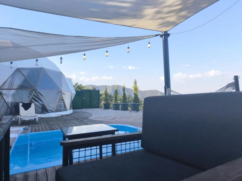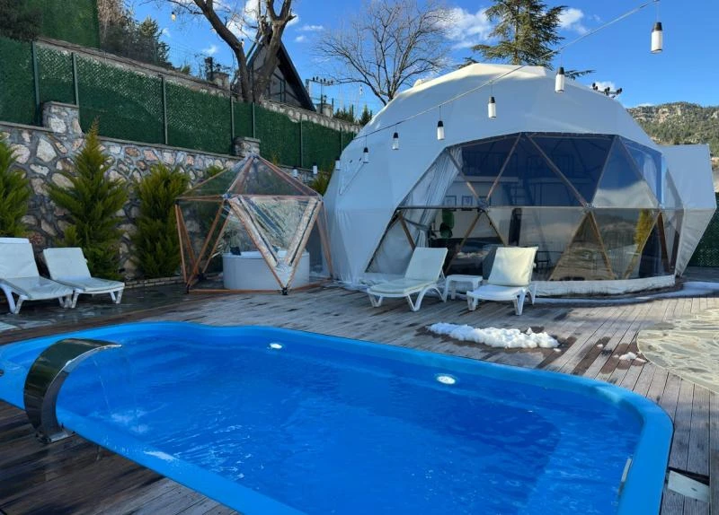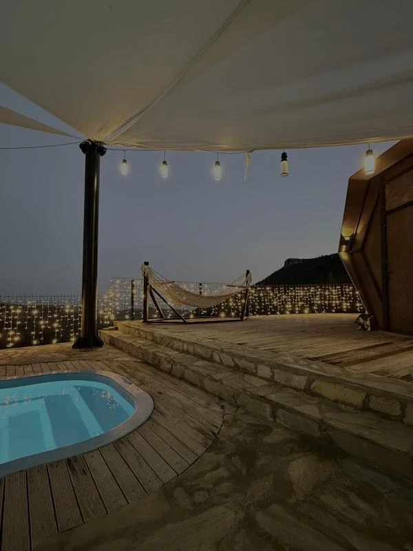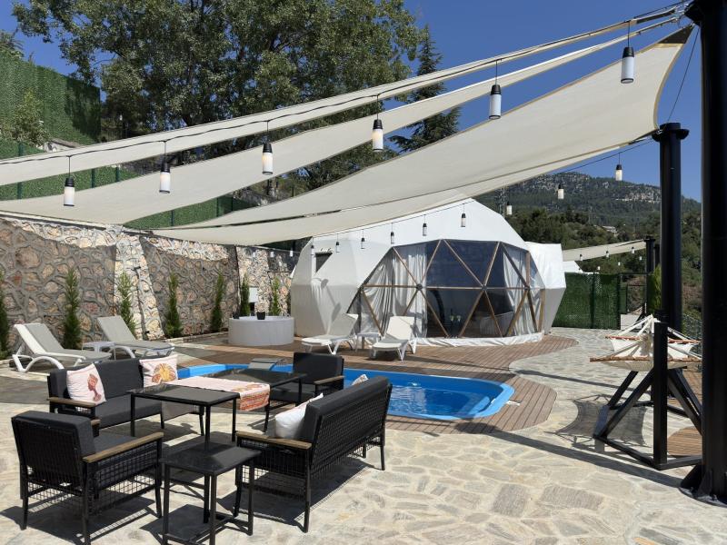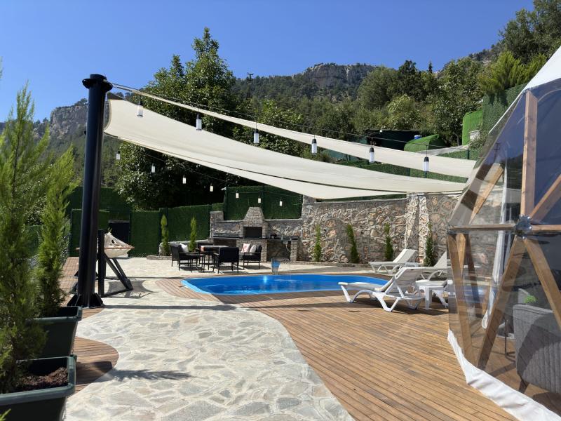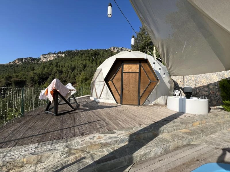 Mersin Çeşmeli’de, denize sadece 23 km mesafede yer alan özel havuzlu ve jakuzili glamping alanımız, doğayı lüksle buluşturuyor. Barbekü alanı, havuz başındaki şezlonglar ve açık hava yemek masasıyla kendinizi şımartabilir, tam donanımlı mutfak ekipmanlarıyla lezzetli yemekler hazırlayabilirsiniz. Klima ve Wi-Fi gibi modern olanaklarla donatılan bu alan, doğanın kalbinde huzur bulmanızı sağlıyor. Muhteşem manzarası ve şık tasarımıyla dikkat çeken glamping alanımız, doğayla iç içe bir tatil arayanlar için ideal bir tercih. Mersin Çeşmeli, yaz aylarında (Haziran-Eylül) tatilcilerin gözdesi. Akdeniz’in sıcak iklimi ve Çeşmeli’nin serin denizi, sahilde harika bir tatil geçirmek isteyenler için mükemmel bir ortam sunuyor. Bölgenin en güzel yanlarından biri, hem deniz keyfi yaparken hem de doğayla baş başa kalabileceğiniz saklı koyları. Mersin’in eşsiz plajları, tarihi zenginlikleri ve Akdeniz mutfağıyla birleşen atmosferi, tatilciler için cazip bir destinasyon haline getiriyor. Eğer doğanın içinde lüks bir kaçamak yapmak istiyorsanız, bu özel glamping alanı tam size göre! Kendinizi yenilemek ve doğayla bütünleşmek için hazır mısınız?