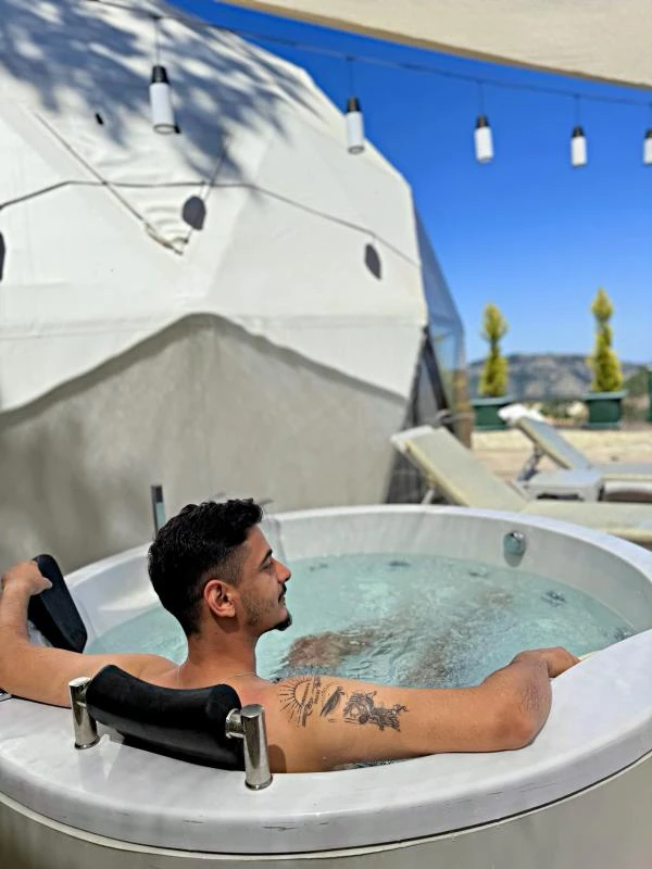 Kahvaltılı diye aldık güya peynir zeytin haşlanmış yumurta reçel geldi ekstra hiçbir şey yoktu, çay bile sallama çaydı poşetiyle geldi demleyip termosa koymaya tenezzül etmemişler. Gelelim jakuziye sıcak suyu ılıktı dolana kadar soğudu resmen donduk giremedik görevlilere bir kaç kere söylememize rağmen ne gelen oldu ne giden kimse ilgilenmedi Temizlik konusuna gelince üstün körü temizlenmişti havuz pisti sürekli böcek düşüyordu etrafta çokça böcek ve karınca vardı belli ki hiç ilaçlanmıyor havuzun suyuna ne kattılar bilmiyorum ama bildiğiniz hipo korkuyordu çıkınca bile tenimiz kokuyor yani o derece Glampingin üst katı sıcaktan yatılmayacak kadar oluyor ve diğer villanın salıncağına denk geldiği için sesten gürültüden yatılmıyor Ayrıca havuz da ısıtmalı değildi dağın başında olduğu için zar zor girdik donduk Bir daha tercih eder miyim asla!!!!!