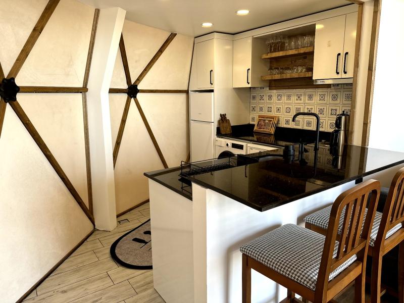Parasını hakedecek bir yer değildi mutfak malzemeleri eksik ve eski asma tavana çift kişilik yatak koymuşlar ama sıcaktan yatamadik pencere yoktu bunaldık aşağıda kanepede yattık çalışanlara ulaşmak biraz zordu yan glamping deki misafirler aşırı ses yaptılar gece sabaha kadar müzik kahkaha çok rahatsiz olduk uyarı yapmalarını söyledik ama kimse oralı olmadı havuz ve jakuzi güzeldi temizlikte iyiydi manzara güzeldi iyi yanları bunlar sadece