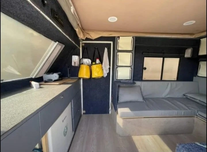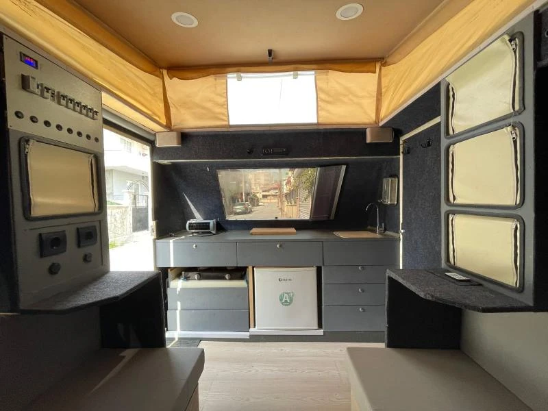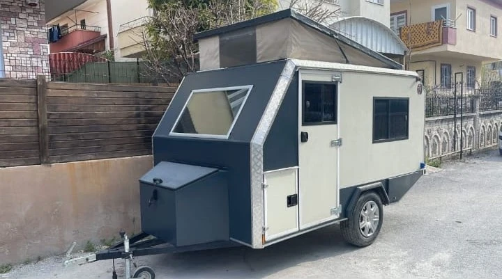 Doğayla buluşmayı sevenler için tasarlanan özel yapım elektrikli çekme karavan, konforu ve pratikliği bir arada sunuyor. İçinde bulunan mutfak alanı ile yolculuk boyunca yemeklerinizi hazırlayabilir, radyo müzik sistemi ile keyifli anlarınızı renklendirebilirsiniz. 4 kişilik kapasitesiyle bir aileye yetecek şekilde planlanan bu karavan, işlevsel düzeni sayesinde herkes için rahat bir yaşam alanı sağlar. Çift kişilik katlanır yatak sistemi, hem konforlu bir uyku hem de kullanım kolaylığı sunar. Kısacası; özgürlüğü sevenler için bu karavan, tatillerinizi doğanın kalbinde konforla buluşturacak eşsiz bir seçenektir.