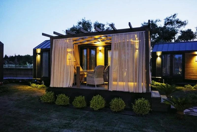 Mersin’in yükselen tepelerinde konumlanan bu özel tiny house tesisi, şehir silüeti ile doğanın iç içe geçtiği etkileyici bir manzara sunuyor. Modern mimariye sahip bağımsız evler, hem çiftler hem de arkadaş grupları için mahremiyet ve konforu bir arada sağlayan bir yaşam alanı oluşturuyor. Her bir tiny house, geniş cam yüzeyleri sayesinde gün doğumundan gün batımına kadar Mersin’in ışığını içeri taşıyor; doğanın sakinliğini modern bir konaklama deneyimiyle buluşturuyor. Tesis bünyesinde yer alan restoran, yerel lezzetlerle zenginleştirilmiş menüsü ve panoramik manzaraya hakim oturma alanlarıyla misafirlerine özel bir gastronomi deneyimi sunuyor. Resepsiyon hizmeti ise günün her saati destek sağlayarak konaklamayı güvenli, düzenli ve kusursuz hale getiriyor. Hem şehirden uzaklaşmadan doğaya dokunmak hem de konforlu bir tatil geçirmek isteyenler için bu tiny house tesisi, Mersin’de unutulmaz bir rota sunan benzersiz bir alternatif olarak öne çıkıyor.