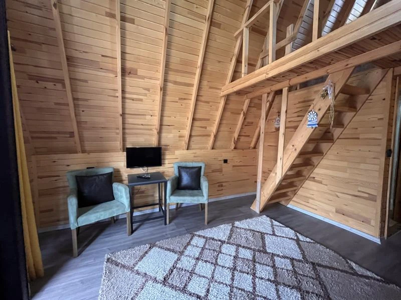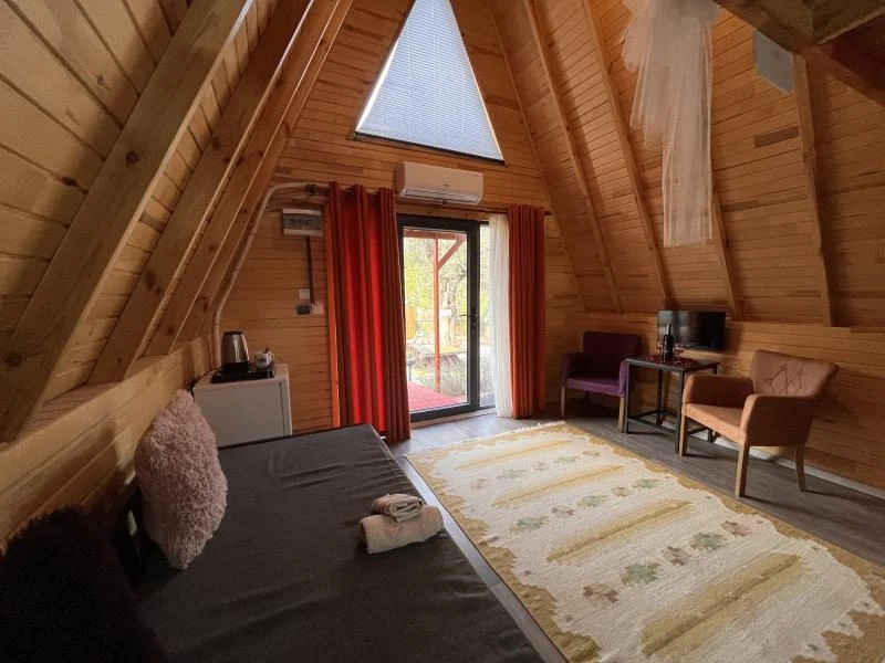 Öncelikle tatilox u kesinlikle tercih etmeyiniz bize herhangi bir bungalov seçtirilmedi gittiğimizde bize herhangi bir ev verildi içeri girdiğimizde nevresim takımında lekeler vardı terlikler kullanılmıştı kullanılan terlikleri makinada yıkayıp geri koyuyorlarmış temiz yeni terlik istediğimde yetkili hanımefendi bana biz otel değiliz butik oteliz dedi bungalovu beğenmediğimiz için değiştirmek istedik bizi bir süre beklettiler sonra tekrardan biz birilerini bulup sorunumuzu çözmek için yetkili kişi aradık doğru düzgün ilgilenen birisi olmadı genel olarak tesisin temizliği ve bakımı iyi değildi çoğu şey eskimiş asla fotoğraflarda göründüğü gibi bir tesisle karşılaşmadık fotoğraflara aldanmanızı istemem havuz küçük oturcak doğru düzgün şenzlog yok ve kimsede ilgilenip sorununuza çözüm bulmuyor ilgilenen hanımefendi çok ukala ve ters tavırlı bir hanımefendi bir gece kalacağımız için idare ettik kesinlikle önermiyorum aile işletmesi ve herkes kafasına göre takılıyor hiç bir hizmette yeterli değil