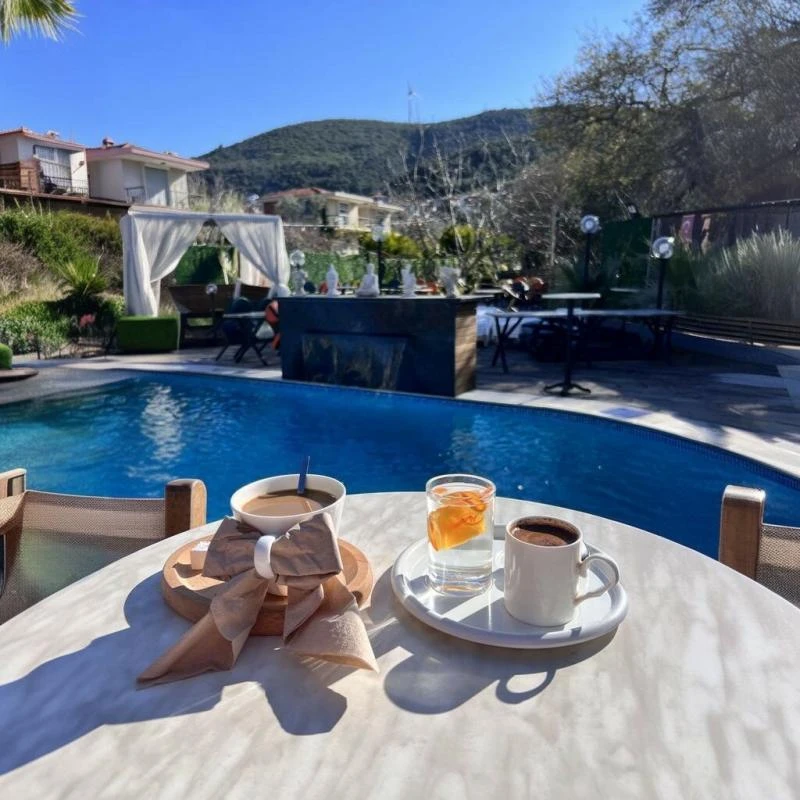 Bu sabah çoook keyifli havuz başi kahvalti yaptik.. ev yapimi reçeller eşligin pişi si böreği herşey 10 numnara 5 yıldiz ..özelliklede Duygu hn mın samimi ilgisi cok değerli ..teşekkuur ederiz tekraren..