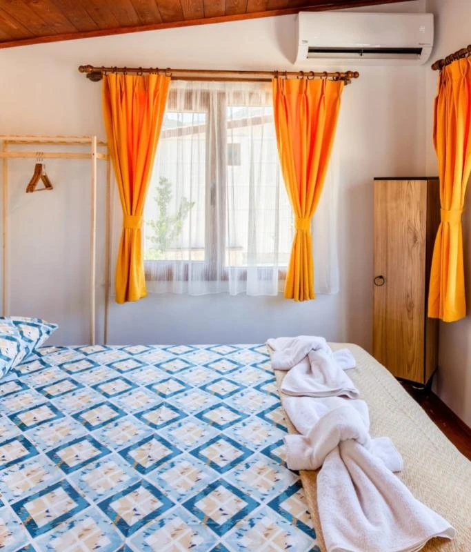 İzmir Karaburun’da deniz kenarında yer alan bu butik otel, doğanın kucağında eşsiz bir kaçış sunuyor. Ücretsiz internet ile her an bağlantıda, özel otoparkla aracınız güvende. Trekking ile keşfe çıkabilir, isteğe bağlı özel organizasyonlarla tatilinize eğlence katabilirsiniz. Bahçede huzuru bulurken, 24 saat açık resepsiyon ve hızlı check-in/check-out ile her şey kolayca akıp gidecek. Günlük temizlik hizmetiyle ferah bir ortamda konaklarken, ücretli transfer servisimizle zahmetsizce ulaşım sağlayabilirsiniz. Engelli misafirler için düz ayak girişle her şey düşünülmüş. Karaburun’un denizine ve doğasına sıfır bir tatil için daha iyisi yok!
