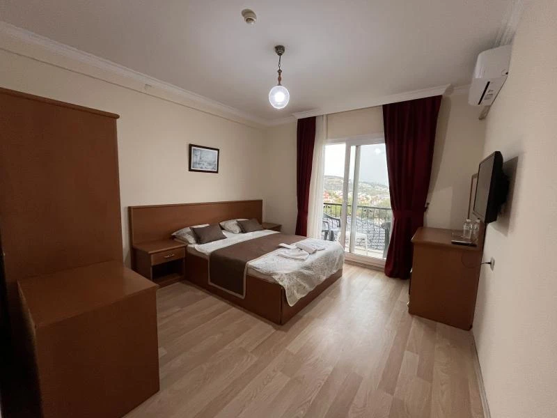 KOD 3518 - İzmir Yeni Foça Denize Yakın Havuzlu Otel İzmir Yeni Foça'da yer alan bu denize yakın havuzlu otel, konuklarına konforlu ve keyifli bir tatil sunuyor. Ücretsiz internet hizmeti ile rahat bir bağlantı imkanı sağlanırken, halka açık otopark sayesinde aracınızı güvenle park edebilirsiniz. Otelde açık yüzme havuzu, çocuk havuzu ve ortak havuz seçenekleriyle her yaştan misafirin yüzme keyfini çıkarabileceği alanlar mevcut. Tavla, okey takımı, bilardo ve satranç gibi aktivitelerle tatilinize eğlence katabilirsiniz. SPA ve sağlık olanaklarının yanı sıra, otelin restoran ve bar seçenekleri de oldukça zengindir. Açık restoran, kapalı restoran, vitamin bar ve havuz bar gibi çeşitli seçeneklerle günün her anında lezzetli yiyecek ve içecekler tadabilirsiniz. Ortak alanlarda bulunan güneşlenme terası, bahçe ve şezlong-şemsiye hizmeti sayesinde doğanın tadını çıkarabilirsiniz. 24 saat açık resepsiyon ve hızlı check-in/check-out hizmetleri ile konforunuz ön planda tutulmuştur. İhtiyaç duymanız halinde ücretli transfer hizmeti de sunulmaktadır.