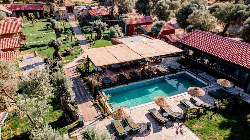 İzmir Foça’da tatil keyfinizi en üst seviyeye taşıyan hizmetlerle dolu bir tesis sizi bekliyor! Ücretsiz internetle bağlantınız hep açık, özel otoparkla aracınızı rahatça park edebilirsiniz. Serinlemek isteyenler için açık yüzme havuzu ve ortak havuz, güneşlenme terasıyla birleşiyor. Restoran seçenekleri de oldukça geniş; kapalı ve açık restoranlarda, alakart menülerin tadını çıkarabilir, havuz barda serinletici içeceklerle keyfinize keyif katabilirsiniz. Güneşlenirken şezlong ve şemsiye hizmetiyle konforunuz sağlanırken, bahçe ve TV odası gibi ortak alanlarda dinlenebilirsiniz. 24 saat açık resepsiyon, hızlı check-in/out ve kahve dükkanıyla her anınız rahat ve keyifli geçecek.