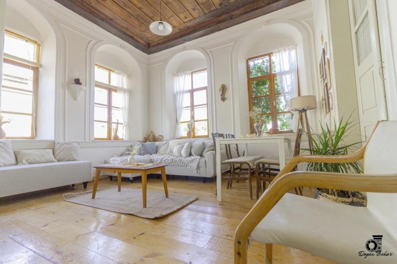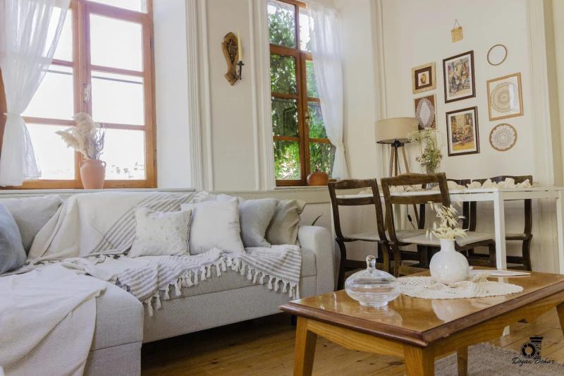 İzmir Eski Foça'da yer alan tarihi Rum evi, geçmişin büyüsünü modern konforla buluşturuyor. Ücretsiz internet hizmeti ile her an bağlantıda kalabilir, halka açık otopark sayesinde aracınızı rahatça park edebilirsiniz. Bahçesi ve terası ile dinlenme alanları sunan bu ev, doğanın tadını çıkarabileceğiniz harika bir ortam sağlıyor. Mangal veya barbekü alanında sevdiklerinizle birlikte keyifli anlar geçirebilir, tarih kokan bu mekanda unutulmaz anılar biriktirebilirsiniz. Eski Foça’nın tarihi dokusunda huzurlu bir tatil için sizi bekliyor!