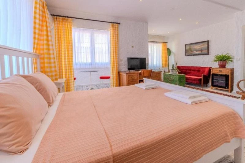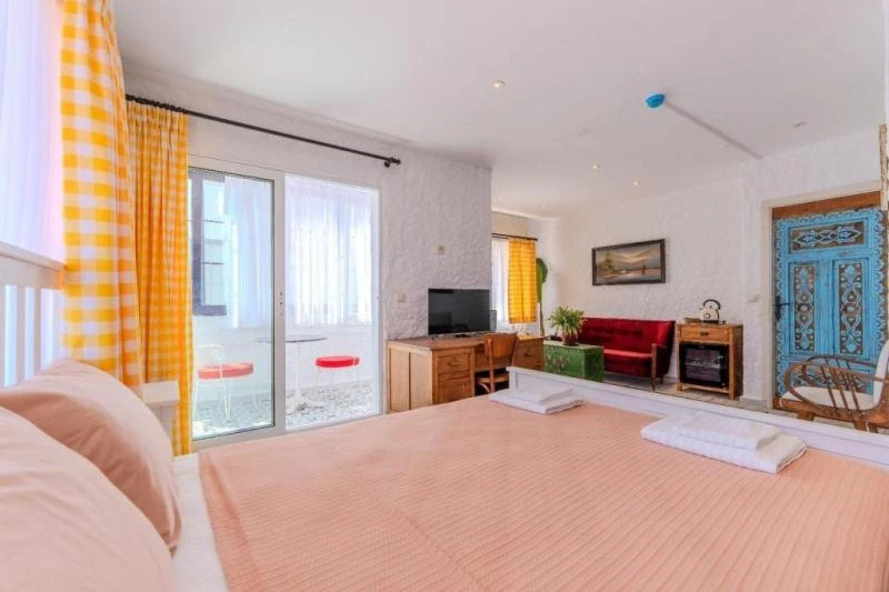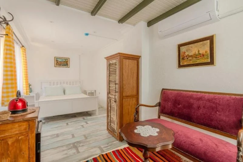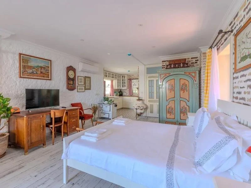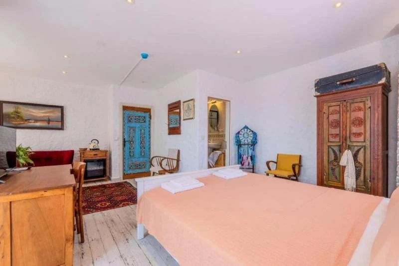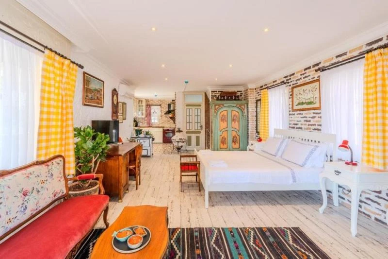 Karaburun’un huzurlu atmosferinde, taş dokulu mimarisiyle öne çıkan bu butik konaklama yeri, misafirlerine samimi ve sıcak bir ortam sunuyor. Sadece altı odadan oluşması sayesinde sakin, huzurlu ve kişiye özel bir tatil deneyimi yaşatıyor. Bodrum Koyu’na birkaç adım mesafede yer alması, denizle ve doğayla iç içe unutulmaz anlar yaşamanıza imkân tanıyor. Odaların bir kısmı bahçeye, bir kısmı ise denize bakarken her biri özenle dekore edilmiş ve konfor için tasarlanmış durumda. Sabahları taze ürünlerle hazırlanan kahvaltı, güne keyifli bir başlangıç yapmanızı sağlarken, güler yüzlü hizmet anlayışıyla tatiliniz daha da özel hale geliyor. Sessizliği, samimiyeti ve huzuru arayan misafirler için ideal bir seçenek olan bu tesis, romantik kaçamaklardan aile tatillerine kadar her ihtiyaca hitap ediyor.