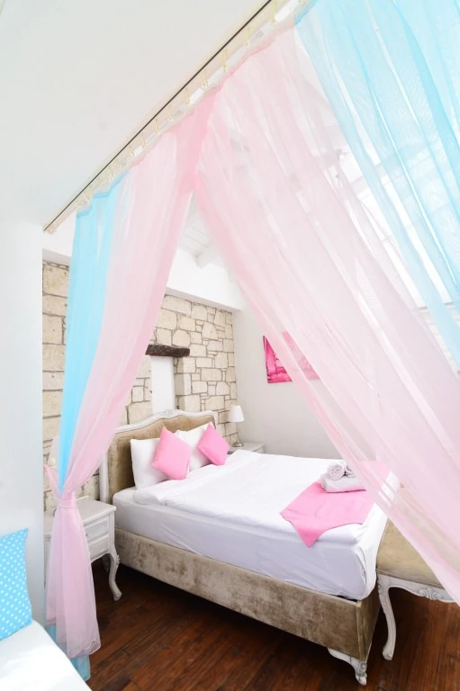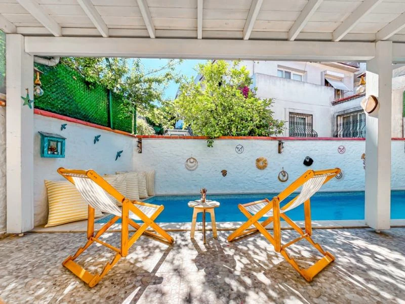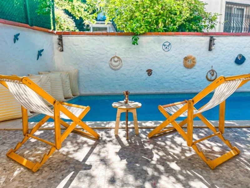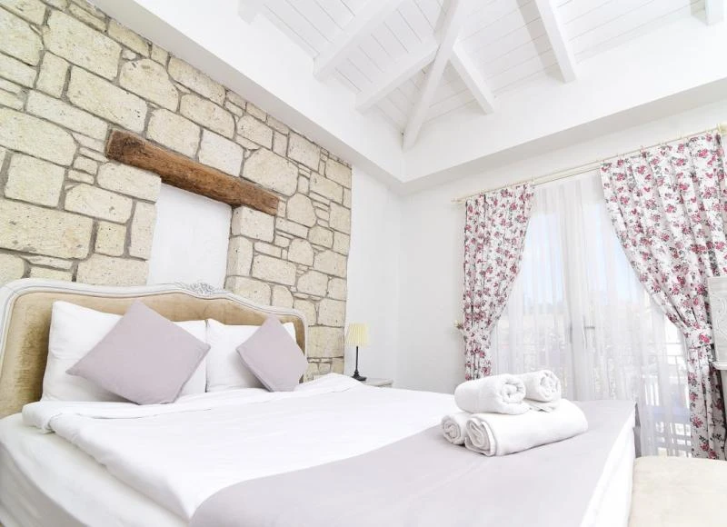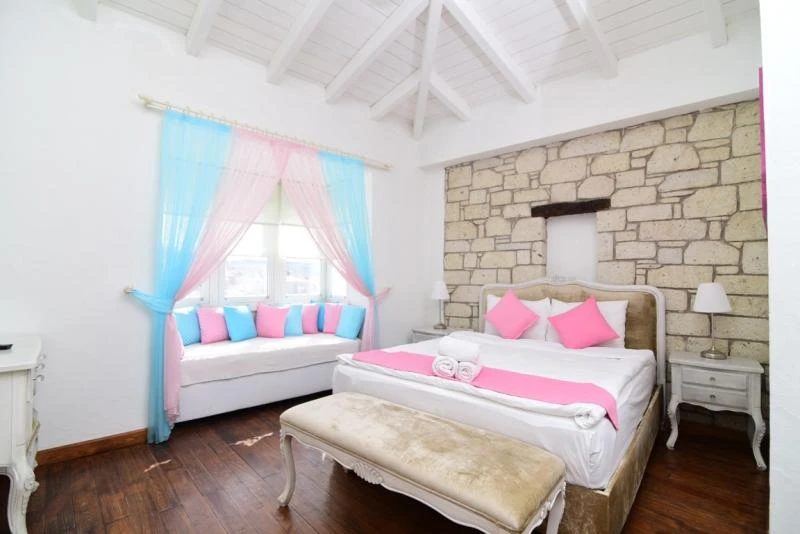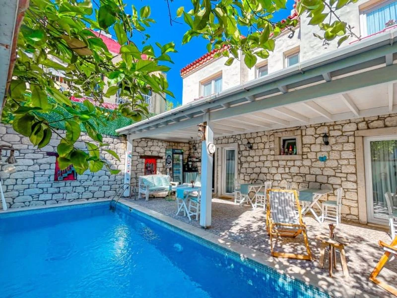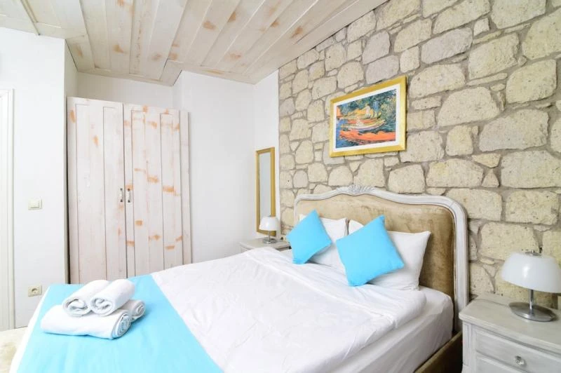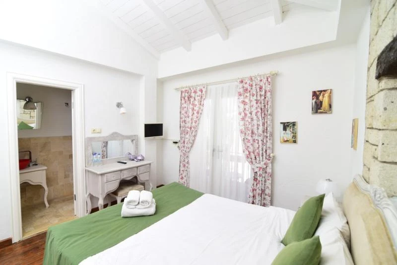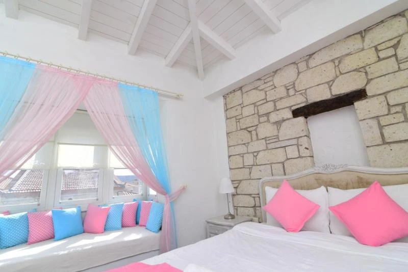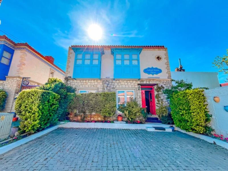 Alaçatı’nın kalbinde yer alan bu şirin tesis, geleneksel taş mimarisi ile modern konforu bir araya getiriyor. Merkezi konumu sayesinde çarşıya ve bölgenin popüler noktalarına yürüyerek kolayca ulaşılabiliyor. Sakin ve huzurlu atmosferiyle tatilde dinginlik arayan misafirler için ideal bir ortam sunuyor. Odalar ferah ve zevkli detaylarla tasarlanmış olup, bazıları balkon ya da bahçe manzarasına sahip. Konforunuz için klima, minibar, ücretsiz Wi-Fi ve uydu TV gibi imkanlar standart olarak sunuluyor. Güne, ev yapımı ürünlerle hazırlanan serpme kahvaltı ile başlamak ise tesisteki en keyifli deneyimlerden biri. Yaz aylarında serinlemek için sezonluk açık havuzdan faydalanabilir, bahçede vakit geçirerek günün yorgunluğunu atabilirsiniz.