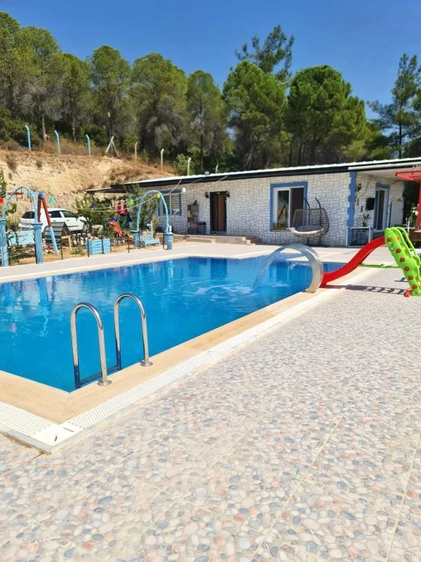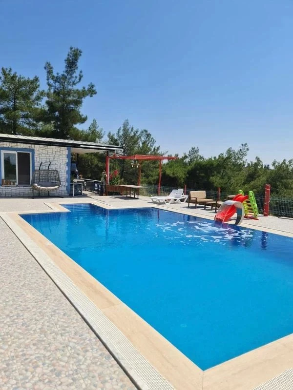 İzmir Torbalı’da yer alan bu 3+1 özel havuzlu villa, geniş ailelerin rahatça konaklaması için özenle tasarlanmıştır. Tatil boyunca hem konforu hem de eğlenceyi bir arada sunan villa, sevdiklerinizle birlikte unutulmaz anılar biriktirmenizi sağlar. Büyük ve ferah bahçesinde gün boyu güneşlenebilir, doğanın içinde huzurlu vakit geçirebilirsiniz. Çocuklarınız için özel olarak hazırlanan oyun alanı sayesinde küçük misafirler güvenle eğlenirken siz de gönül rahatlığıyla dinlenebilirsiniz. Modern tasarıma sahip odalarıyla kalabalık gruplar için ideal bir alan sunan villa, hem aile hem de arkadaş grupları için mükemmel bir tercihtir. Özel havuzunda dilediğiniz gibi serinleyebilir, akşamları bahçede barbekü keyfi yapabilirsiniz. Bölgenin doğal güzelliklerine yakın konumu sayesinde tatilinizi sadece villada değil çevrede de keyifle değerlendirebilirsiniz. Sessiz ve sakin atmosferiyle şehir hayatının stresinden uzaklaşmak isteyenler için adeta bir kaçış noktasıdır. Villada geçireceğiniz her gün, huzur ve mutluluğu sevdiklerinizle paylaşabileceğiniz eşsiz bir deneyime dönüşür.