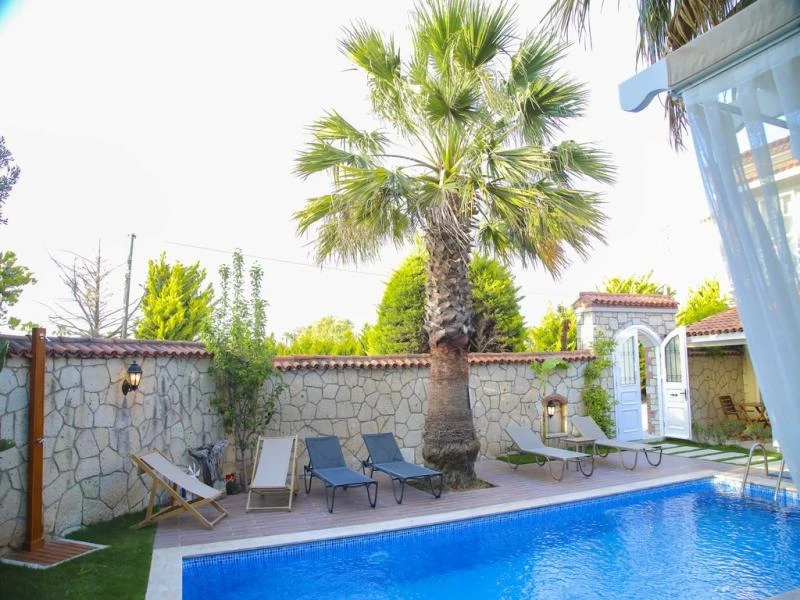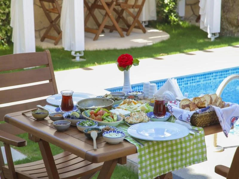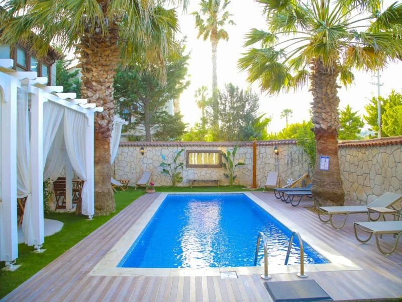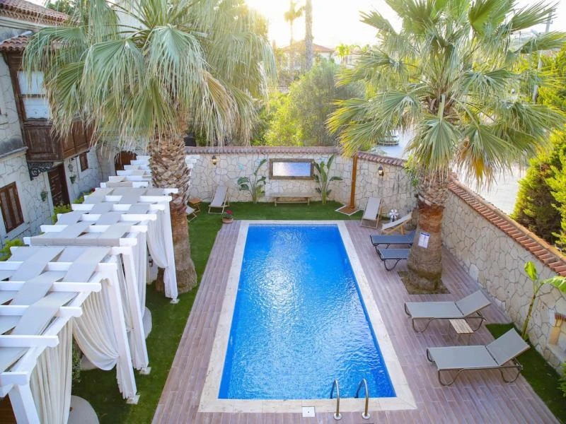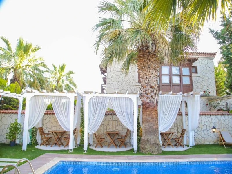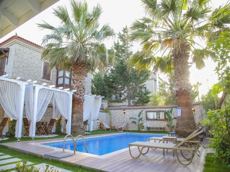 Ege’nin huzurlu atmosferinde yer alan bu şirin konaklama yeri, sadece sekiz odasıyla samimi bir tatil deneyimi sunuyor. Her oda, farklı bir tatil beldesinden ilham alınarak tasarlanmış; taş duvarların sıcaklığı, ahşap zeminlerin doğal dokusu ve aydınlık dekorasyonuyla misafirlerini karşılıyor. Sabahları, özenle hazırlanmış ev yapımı reçeller, taze peynirler, zeytinler ve sıcacık böreklerle donatılmış kahvaltı sofraları güne keyifli bir başlangıç sağlıyor. Akşam saatlerinde ise bahçedeki havuzda dinlenmek ya da sıcak bir sohbet eşliğinde vakit geçirmek mümkün. Plaja yalnızca birkaç kilometre uzaklıkta bulunması sayesinde yaz aylarında serin deniz keyfi, yürüyerek keşfedilebilecek çarşıya yakınlığıyla da alışveriş ve gezinti imkânı sunuyor. Ayrıca klima, minibar, LCD TV ve kablosuz internet gibi modern olanaklarla konfor ön planda tutulmuş. Küçük ama özenli detaylarıyla dikkat çeken bu butik tesis, sakinlik arayan çiftler ve huzurlu bir tatil isteyen misafirler için keyifli bir kaçış noktası yaratıyor.