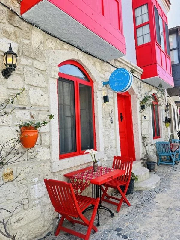Alaçatı’nın tarihi dokusunu taşıyan 100 yıllık bir taş konakta hizmet veren bu özel tesis, toplam 11 bağımsız girişli odasıyla butik ve samimi bir konaklama deneyimi sunuyor. Her oda; LCD TV, minibar, kablosuz internet gibi modern konfor unsurlarıyla donatılmış olup, bahçede sunulan doğal atmosfer ve yöresel ürünlerle hazırlanan serpme kahvaltı misafirlere gerçek bir Ege yaşamı hissi veriyor. Taş duvarların doğal serinliği ve zarif dekorasyon ayrıntıları, konaklamaya hem estetik hem de huzurlu bir karakter katıyor. Tesis, Alaçatı çarşısına yürüyüş mesafesinde yer almasıyla konum avantajı sağlarken, Ilıca Plajı ve bölgedeki sahil aktivitelerine kolay erişim imkânı sunuyor. Restorasyonla korunarak günümüze taşınan mimarisi, ahşap detaylarla güçlendirilmiş iç mekânları ve sakin avlu düzeniyle hem merkezi bir noktada kalmak isteyenlere hem de sessiz bir tatil arayanlara hitap ediyor. Bu kombinasyon, Ege’nin özgün ruhunu modern konforla buluşturan keyifli bir konaklama deneyimi oluşturuyor.