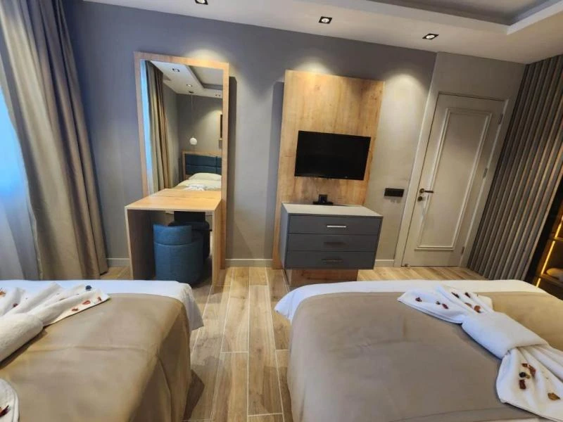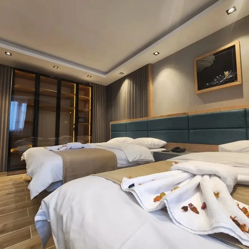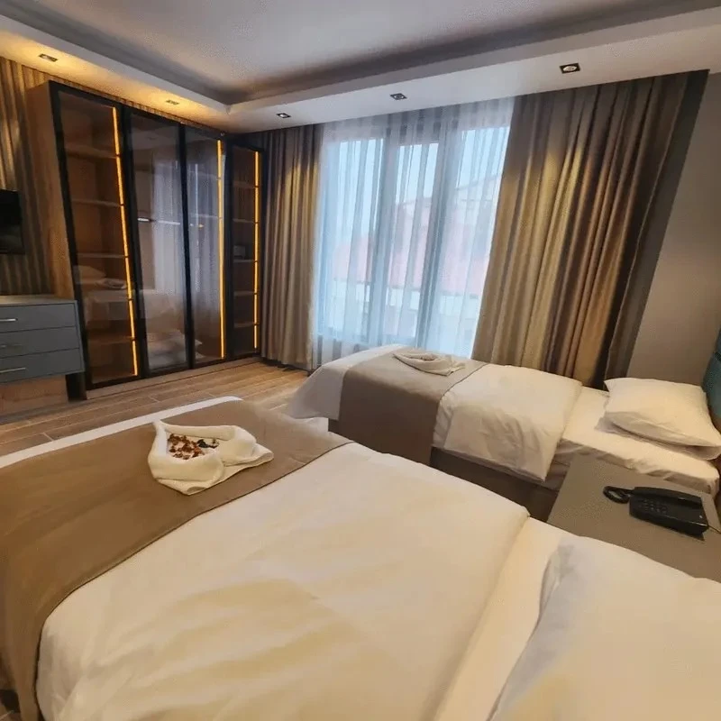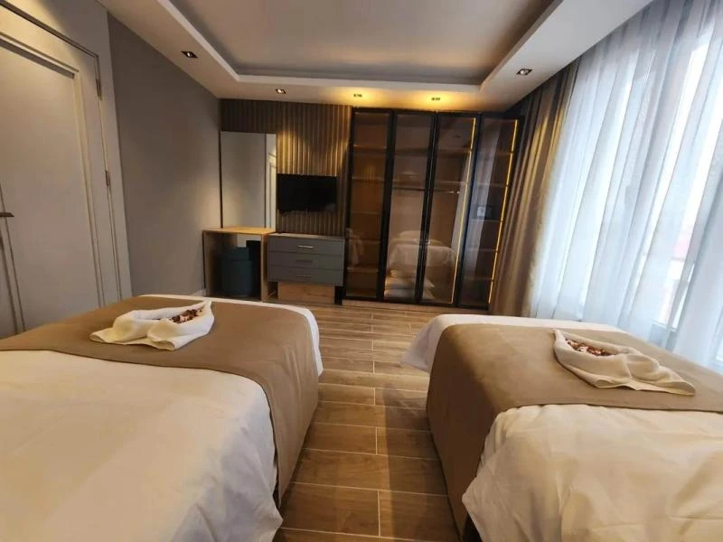Yılbaşı Paketi 🎉 • Canlı müzik 🎶 • DJ performansı 🎧 • Gala yemeği açık büfe 🍽️✨ • Kafkas ve oryantal show 💃🕺 • Gece çorbası 🥣 • Havai fişek gösterisi 🎆 Sarıkamış’ın kristal karlarıyla örtülü sarıçam hattına yakın, kayak merkezine ve ilçe merkezine kısa sürüş mesafesinde konumlanan bu tesis; kapalı havuz, sauna, hamam ve masaj olanaklarıyla gün boyu pistte geçen tempoyu konforlu bir ritme bağlıyor. Yarım pansiyon konseptte açık büfe kahvaltı ve akşam yemeği sunuluyor; gün içi servis ve talebe bağlı transfer imkanıyla ulaşım deneyimi sadeleşiyor. Kars Harakani Havalimanı yaklaşık 53 km, Sarıkamış Otogarı ise yaklaşık 4 km mesafede. Tamamı süit tipinde planlanan odalarda oturma alanı, çalışma masası, makyaj masası, tam boy ayna, minibar ve elektrikli su ısıtıcısı bulunuyor; oda termostatı ile ısı konforu kişiye göre ayarlanabiliyor. İnce düşünülmüş detaylar TV ünitesi, geniş kanepeler, aydınlatmalı gardırop, telefon, havlu-terlik seti ve banyo bukletleriyle tamamlanırken yüksek hızlı Wi-Fi günlük akışı destekliyor; tesisin kış bahçesi, lobi ve restoran alanları kayak sonrası sosyalleşmeye uygun, sıcak bir atmosfer kuruyor.