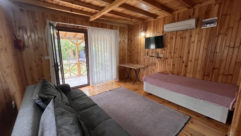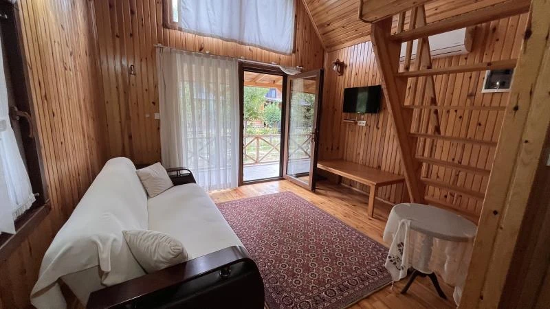 Tesisimiz bungalov temalı olarak inşa edilmiştir. Odaların tamamı 1.sınıf ahşapla kaplanmıştır. Isınma klima ile sağlanmaktadır. Son derece konforlu olarak tasarlanmış odalarda Tv-buzdolabı-klima -çay kahve olanağı-terlik-saç kurutma makinesi mevcuttur. Odalarımız standart, asma katlıdır. Asma katta iki kişilik yatak mevcuttur, alt katta ise oturma alanı bulunmaktadır. Alt katta bulunan koltuk yatağa dönüştürülerek arzu edilirse bu sayede 4 kisiye kadar konaklama imkanı mevcuttur. Tesisimizde sabah kahvaltısı imkanı bulunmaktadır. Wifi Ücretsizdir. Ayrıca otoparkımız mevcuttur