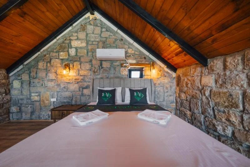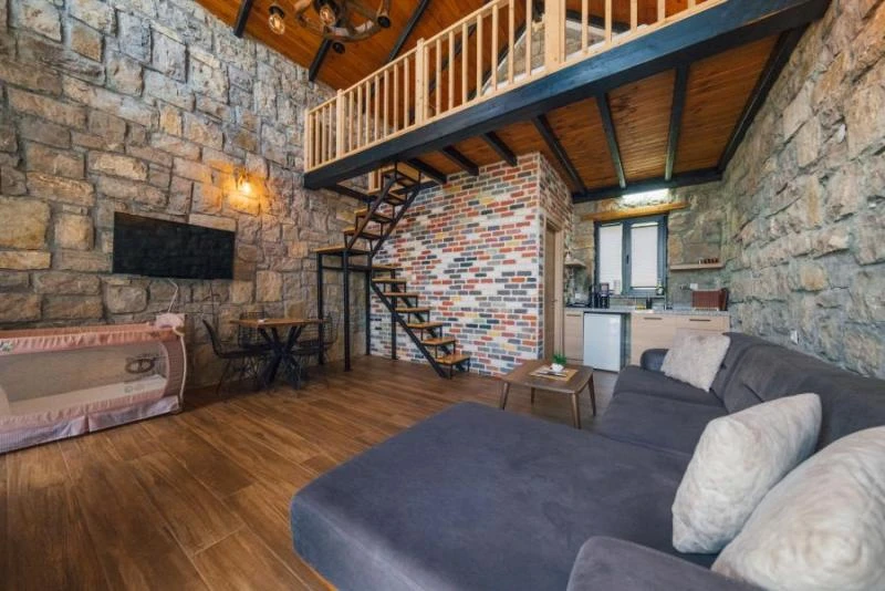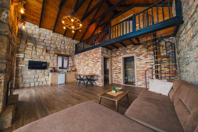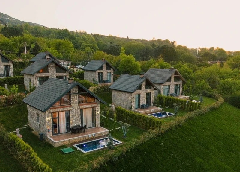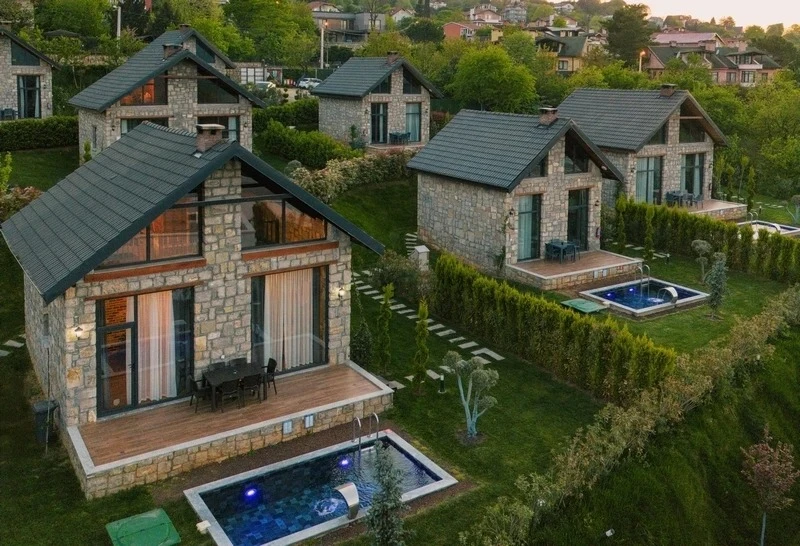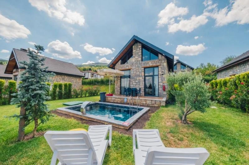 Doğanın kalbinde, taş mimarinin estetik dokusunu modern konforla buluşturan bu tesis; huzurlu bir tatil arayanlar için ideal bir atmosfer sunuyor. Özel havuzlu ve şömineli taş evlerden oluşan konaklama birimleri, sıcak tasarımları ve doğal dokusuyla misafirlere benzersiz bir deneyim yaşatıyor. Tesiste keyifli vakit geçirmek için geniş bahçe alanında şezlonglar ve barbekü alanı sizlerin hizmetine sunuluyor. Odaların içerisinde yer alan mini mutfak, kahve/çay makinesi, mini buzdolabı gibi donanımlar sayesinde konaklamanızı dilediğiniz gibi özgürce planlayabilirsiniz. Doğa yürüyüşleri, çevredeki göl manzaraları ve tertemiz hava ile birleşen bu atmosfer, hem romantik kaçamaklar hem de aile tatilleri için oldukça uygun. Sessizlik ve huzurun ön planda olduğu bu konaklama seçeneği, şehir kalabalığından uzaklaşmak isteyenlere unutulmaz bir deneyim sunuyor.
