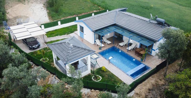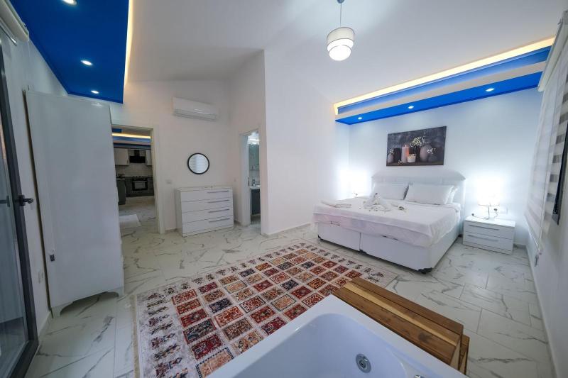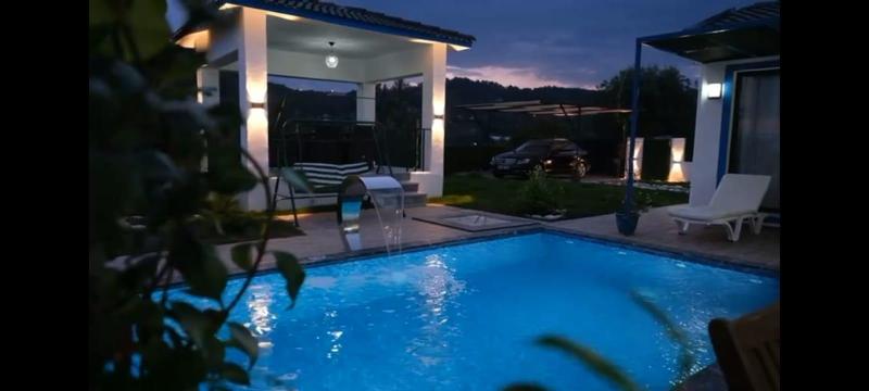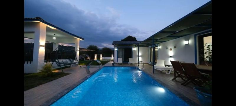 Muğla Seydikemer'de, Fethiye merkeze sadece 29 km mesafede yer alan villamız, 2 yatak odası ve 1 salon ile konforlu bir konaklama sunar. Her odasında ayrı banyo, klima, TV, ütü ve tam donanımlı mutfak ekipmanları bulunan villamızda, özel havuz, jakuzi, güneşlenme terası, özel otopark ve mangal alanı ile keyifli bir tatil geçirebilirsiniz. Özel bahçesi ve mangal alanı ile doğayla iç içe huzurlu anlar yaşayabileceğiniz bu villa, unutulmaz bir konaklama deneyimi için sizleri bekliyor.