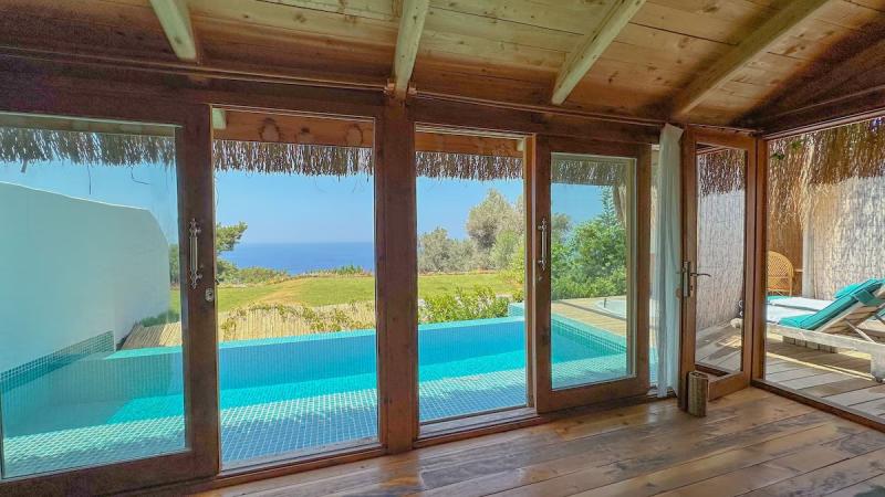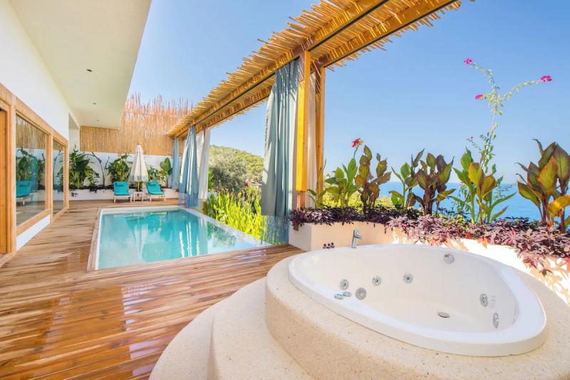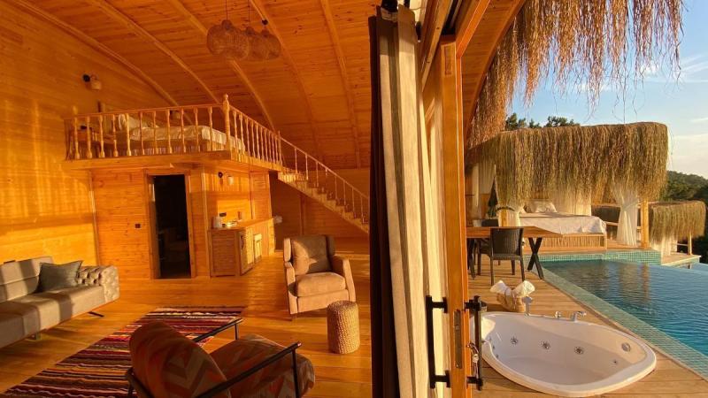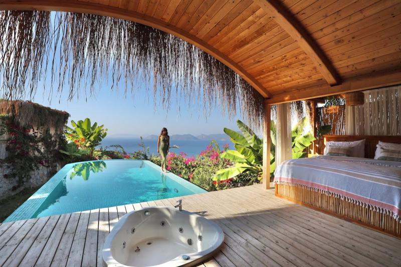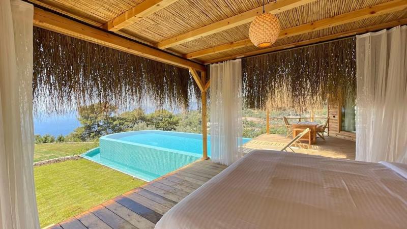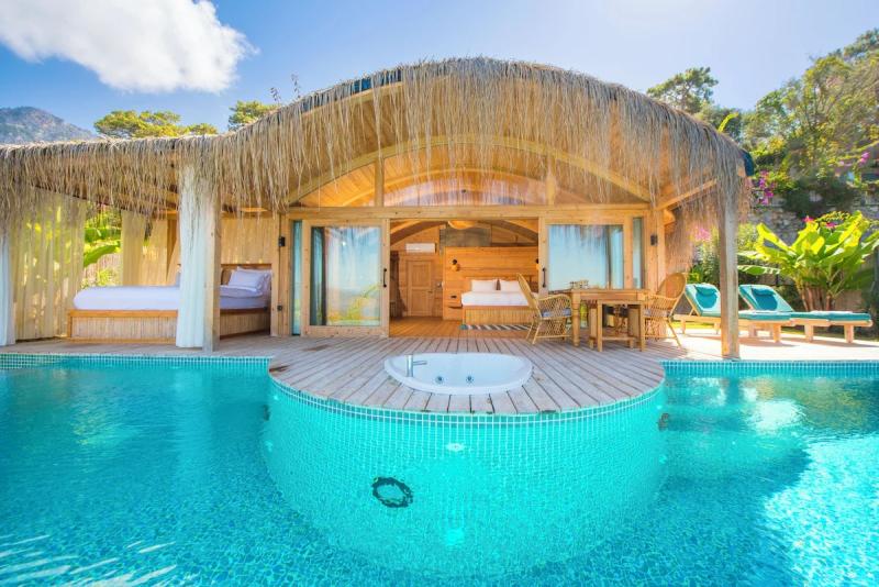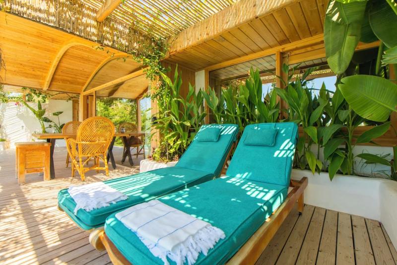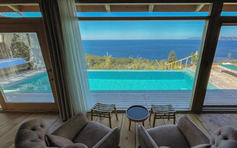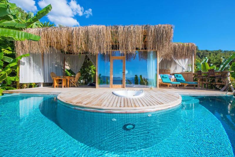 Fethiye'nin doğal cennetinde, deniz ve gökyüzünün buluştuğu bu huzur dolu köşede, modern lüksün ve geleneksel dokunuşların iç içe geçtiği tesisimiz, konuklarına unutulmaz bir tatil deneyimi sunuyor. Göz alıcı özel havuzumuz, ufuk çizgisine kadar uzanan muhteşem deniz manzarasıyla birleşerek, adeta rüya gibi bir atmosfer yaratıyor. Her biri özenle tasarlanmış, farklı konseptlere sahip odalarımızda, konfor ve şıklığın zarif uyumunu keşfedeceksiniz. Bazı odalarımızda bulunan jakuziler, günün yorgunluğunu üzerinizden alırken, tam donanımlı mutfak alanımız ve restoran grubumuz, yerel ve uluslararası lezzetleri sofralarınıza taşıyor. Tesisimizin çevresi, Fethiye'nin büyüleyici doğası ve tarihi dokusuyla çevrili; Kelebekler Vadisi'ne yakın konumumuz ise doğanın kalbinde keyifli yürüyüşler ve unutulmaz anlar yaşamanıza olanak tanıyor. Geniş yeşil alanlarda geçireceğiniz vakit, akşamları yıldızların altında dinlendirici bir huzur sunuyor. Samimi ve güler yüzlü ekibimizin özeniyle birleşen bu doğal atmosfer, modern konforun tüm ayrıcalıklarını sunarken size gerçek bir kaçamak ve yenilenme fırsatı vadediyor.