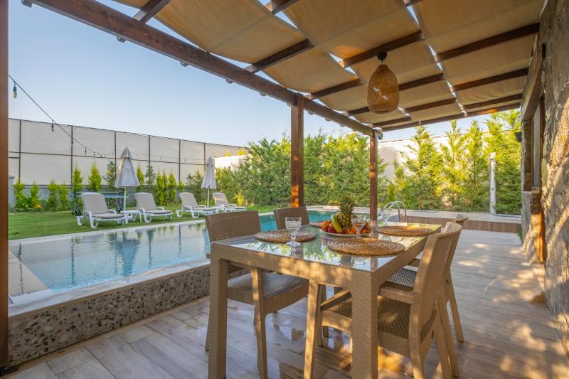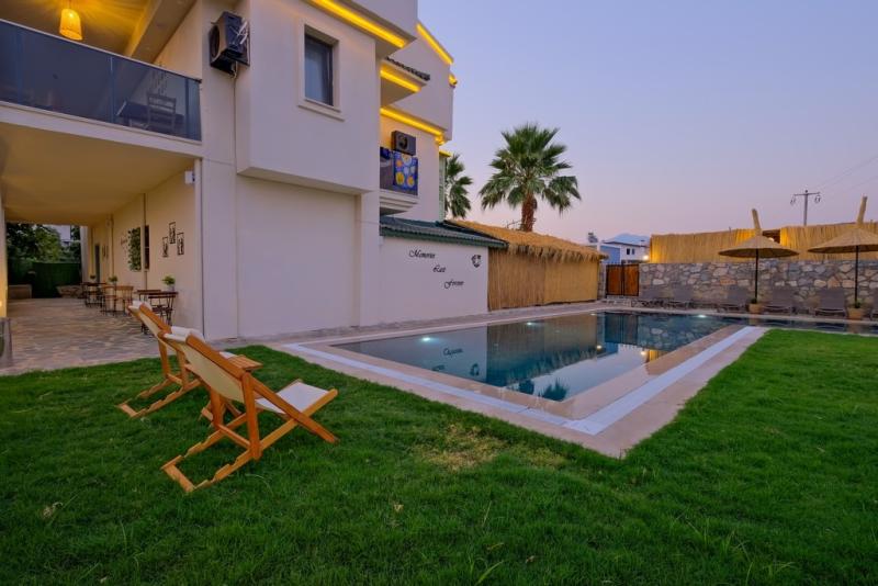 Fethiye’nin doğanın tam kalbinde, huzurlu bir köşesindeyiz. Burada, şehirden uzak ama doğaya yakın, keyifli ve rahat bir tatil geçirebilirsiniz. Özel havuzlu bir konaklama mı istersiniz, yoksa otel konforunda bir oda mı? Seçim sizin. Üstelik tamamen korunaklı bir alan olduğu için, gözlerden uzak, sakin bir tatil arayanlar için de birebir. Eğer otel odamızda kalıyorsanız, güne ev yapımı reçeller, köy peynirleri, taş fırından yeni çıkmış sıcacık ekmekler ve mis gibi doğal lezzetlerle başlayabilirsiniz. Havuzlu odada kalanlar içinse tam donanımlı bir mutfak var; dilediğiniz gibi kahvaltınızı hazırlayabilirsiniz. Daha sade bir tatil planlayanlar için de sadece konaklamalı odalarımız mevcut. Konum olarak her yere yakın ama bir o kadar da sessiz ve huzurluyuz. Fethiye merkeze 7 km, Karataş Plajı’na yürüyerek 500 metre, Çalış Plajı’na 10 dakika mesafedeyiz. Katrancı Koyu’na 3 km, Ölüdeniz’e ise 17 km uzaklıktayız. Burada doğanın ritmine kapılıp, sakin bir tatilin keyfini çıkarabilirsiniz. Ortak havuzda serinleyip, kuş sesleriyle güne başlayabilir, denize birkaç adımda ulaşabilirsiniz. Telaşsız, sakin ve doğayla iç içe bir tatil arıyorsanız, burası tam size göre.
